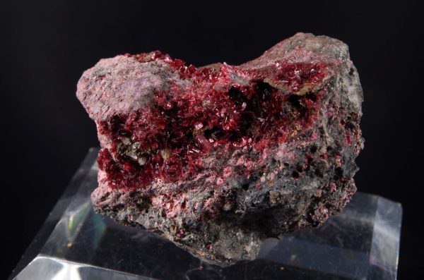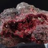 Jolie Erythrite parcourant la matrice présentant des cristallisations pourpres et brillantes.