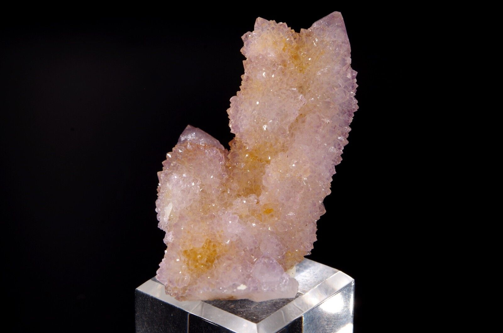 Joli agrégat d’améthyste cactus d’Afrique du Sud composé de plusieurs pointes de quartz colorées avec l’améthyste et la citrine.