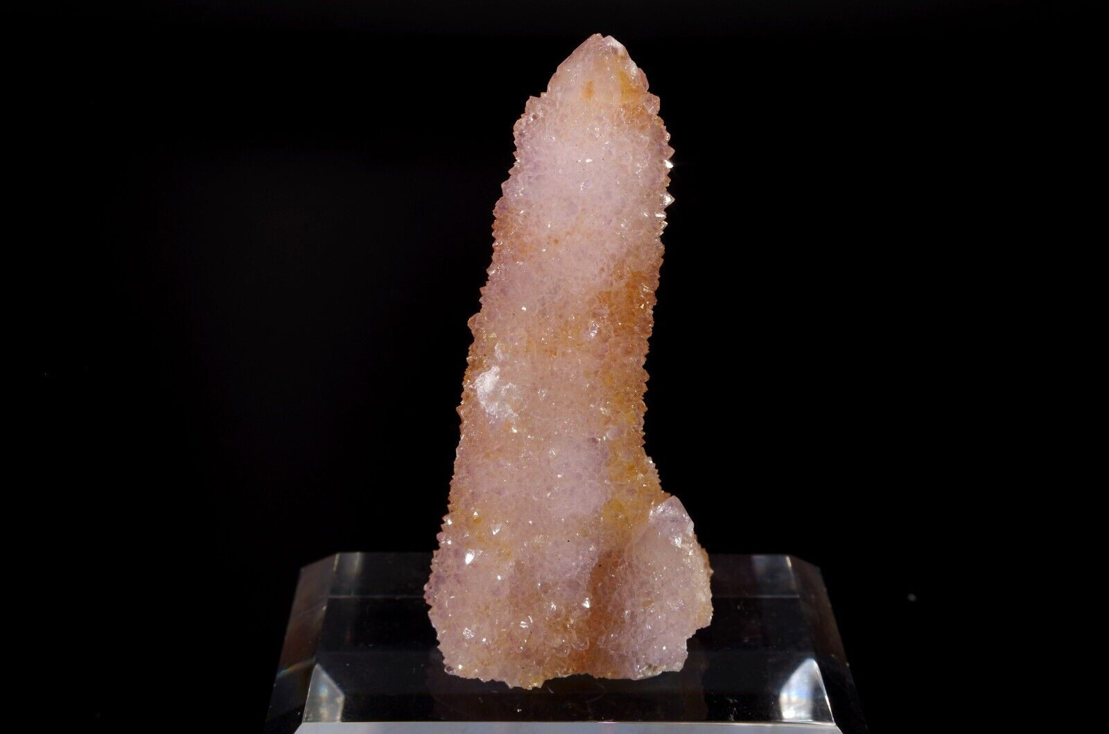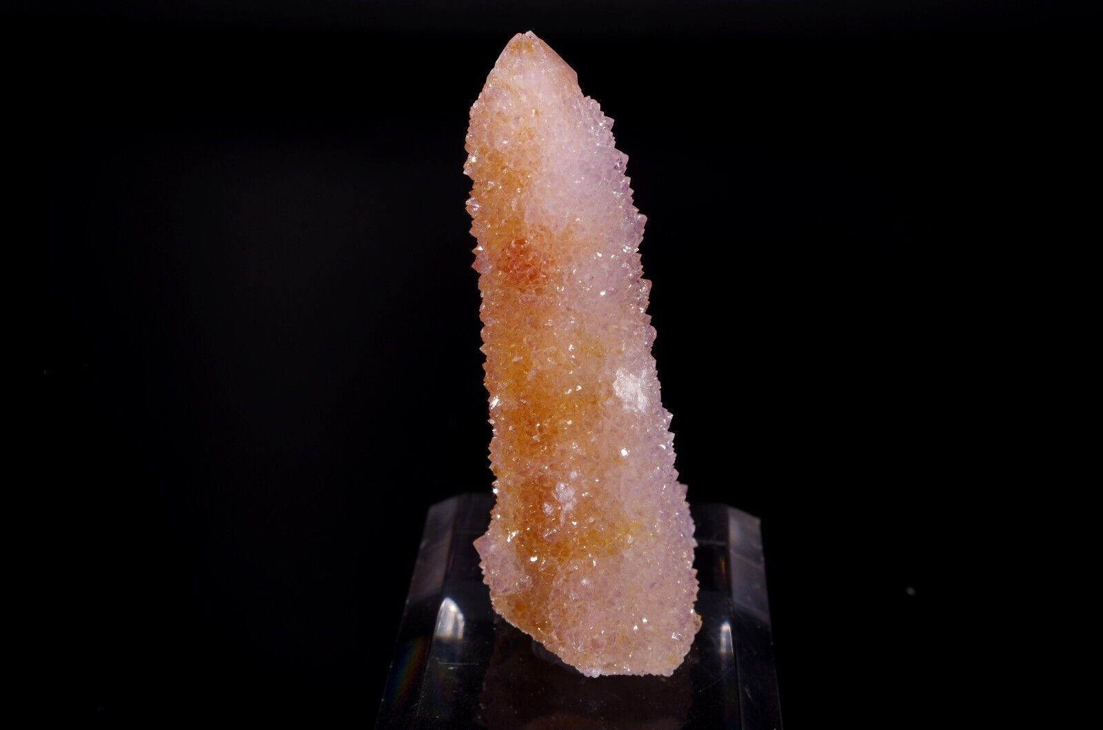 Joli mono cristal d’améthyste cactus d’Afrique du Sud élancé, coloré avec l’améthyste et une face plus marquée par la citrine.