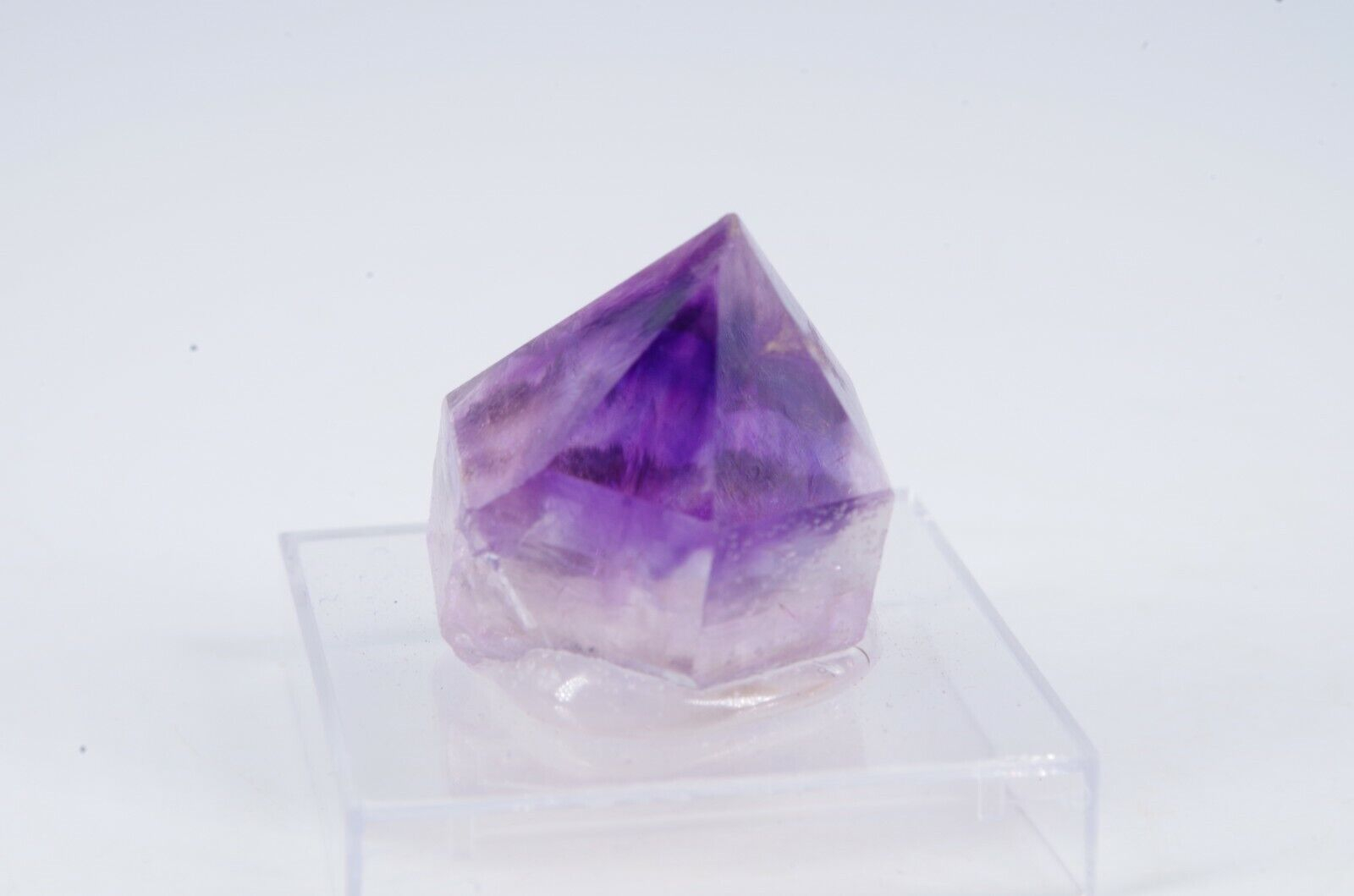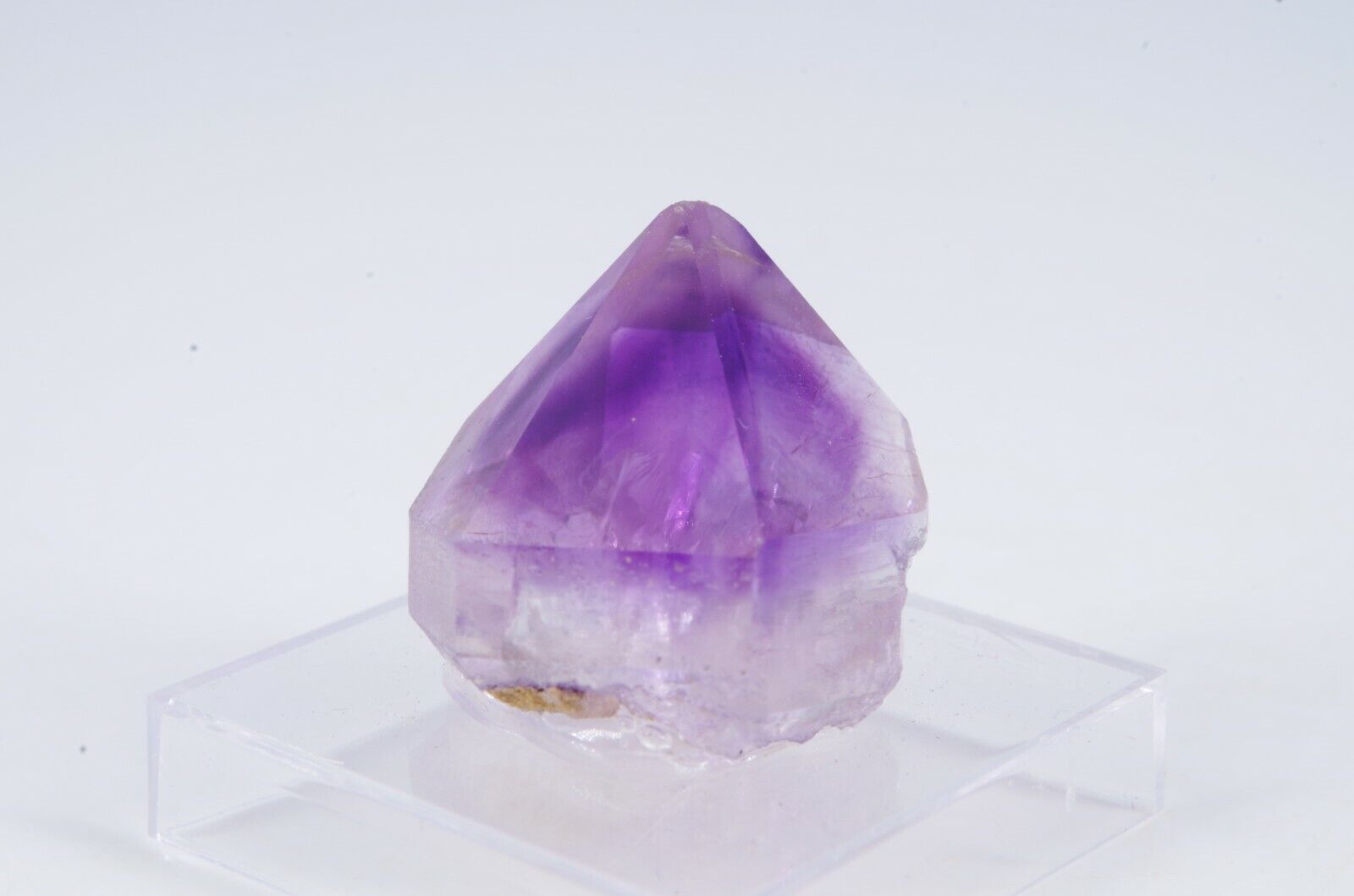 Améthyste « Hourglass » du Maroc aux teintes violettes nuancées d’aspect pointe monocristal avec un beau lustre.