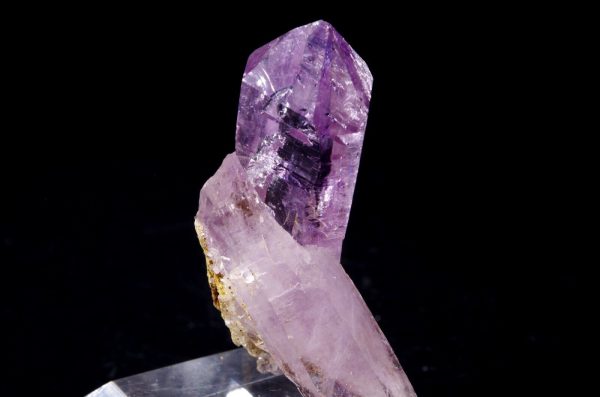 Jolie large pointe d’améthyste de Veracruz du Mexique offrant une jolie couleur et un beau lustre complété par une pointe accolée orientée en diagonale.