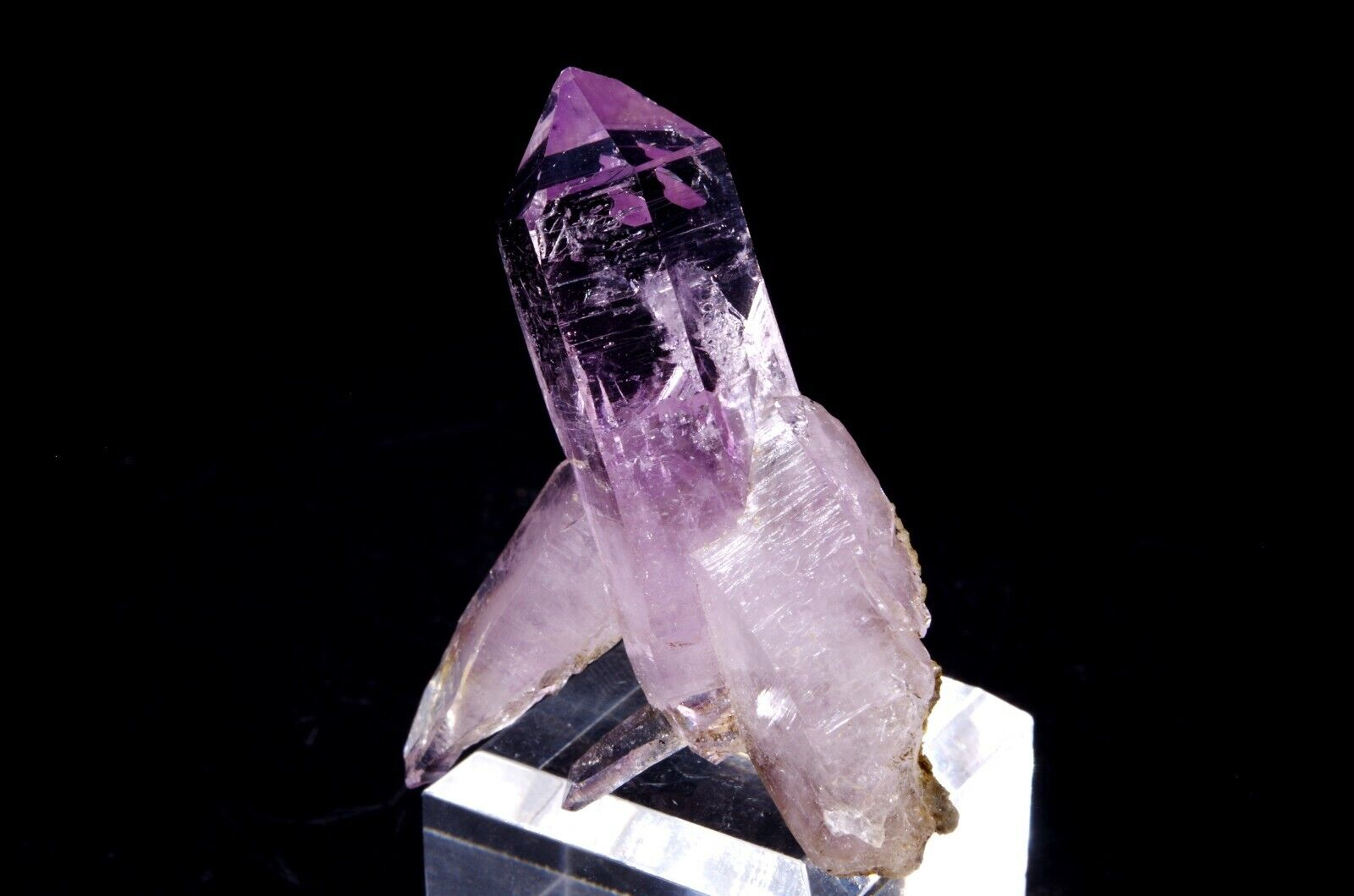 Jolie large pointe d’améthyste de Veracruz du Mexique offrant une jolie couleur et un beau lustre complété par une pointe accolée orientée en diagonale.