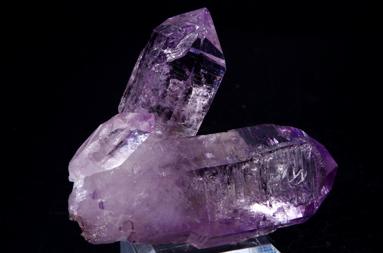 Excellente formation d’améthyste de Veracruz du Mexique présentant 2 larges cristaux harmonieusement agencés ( 2.5cm et 2cm ).