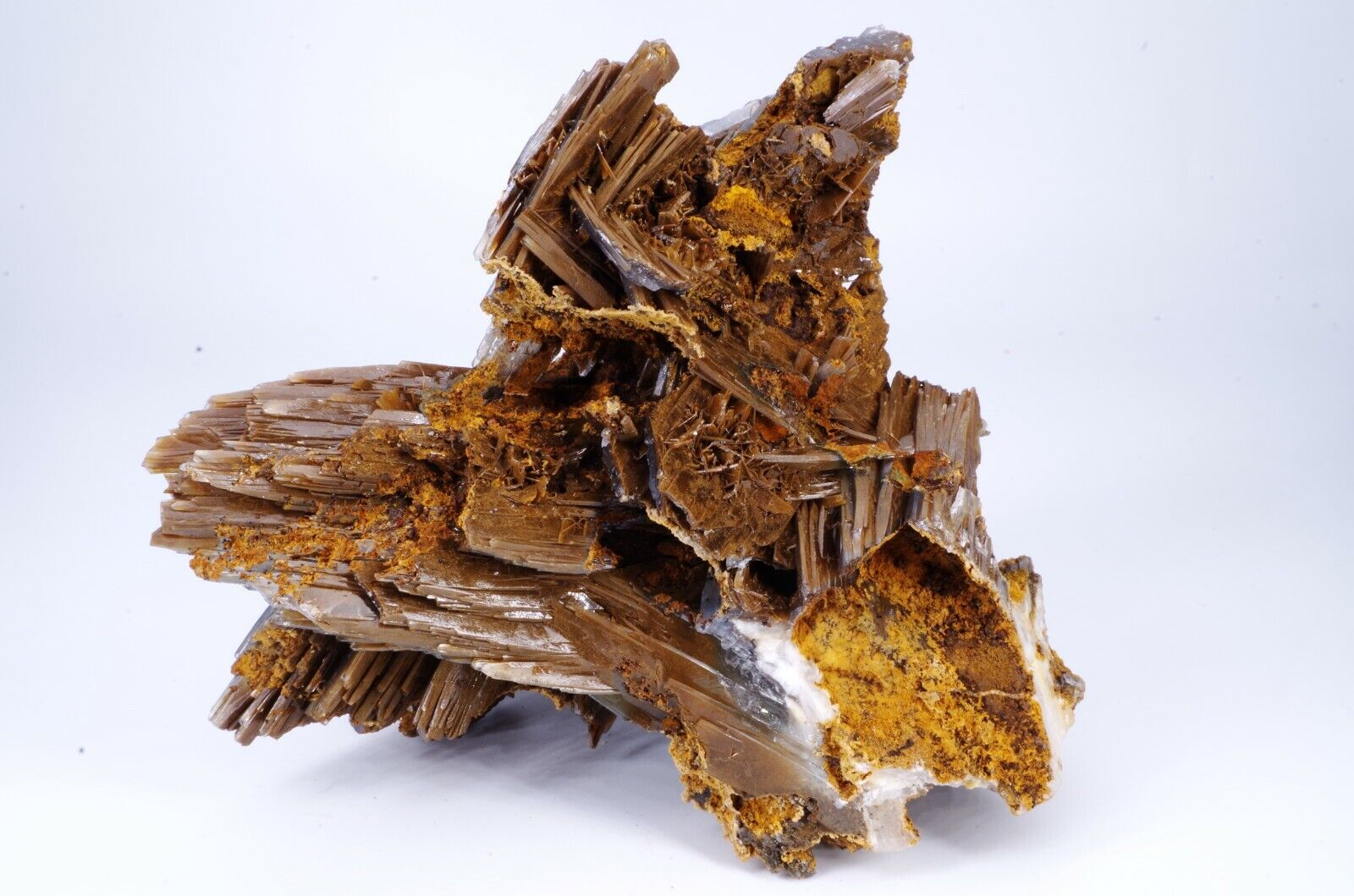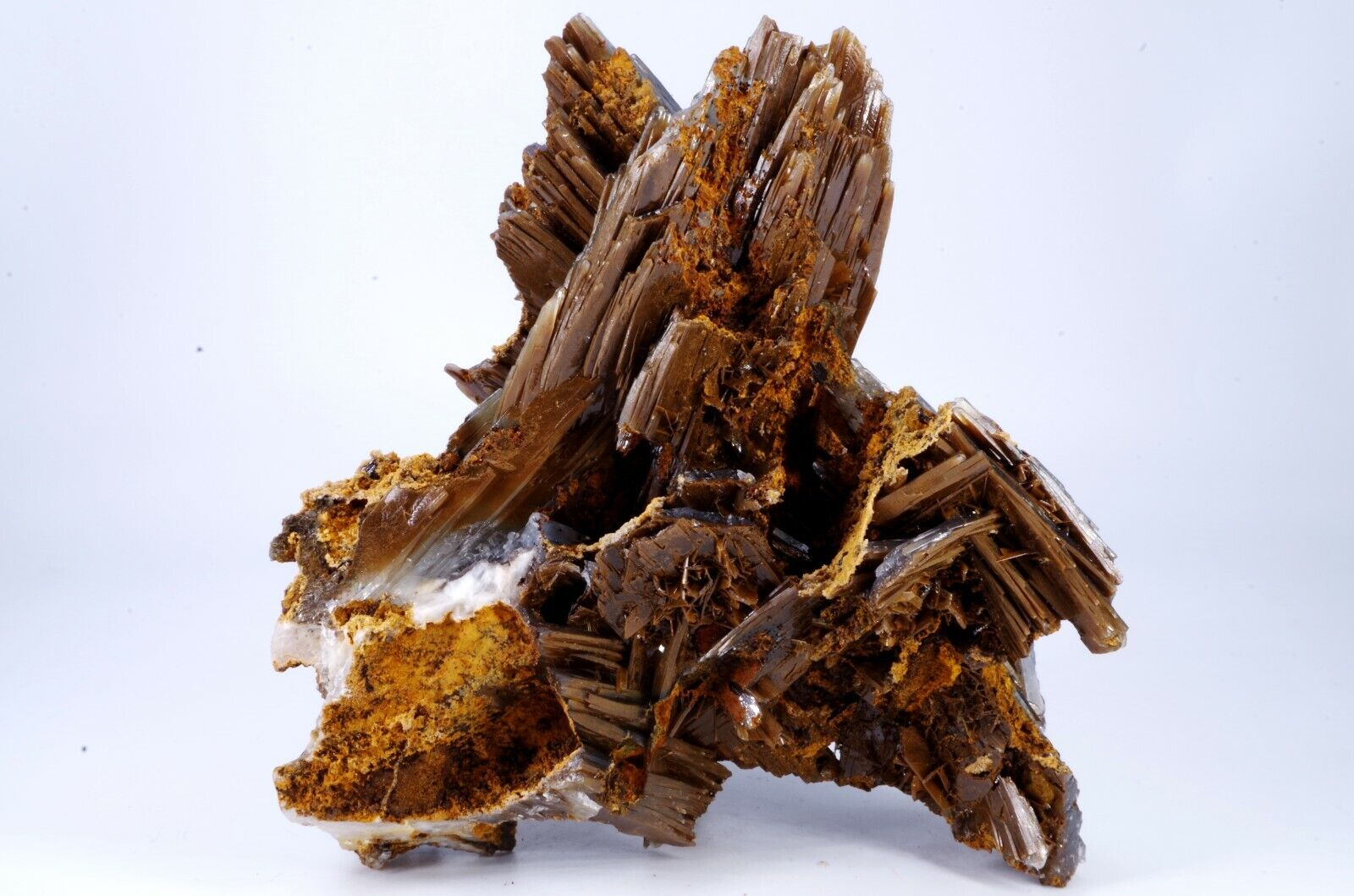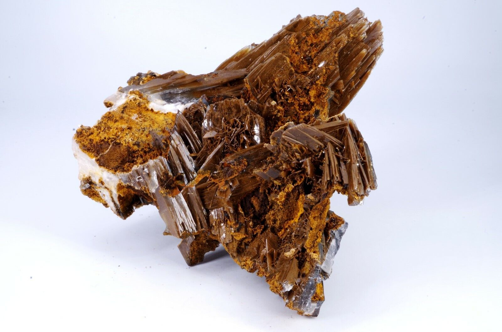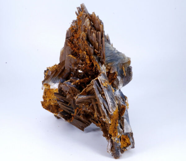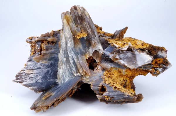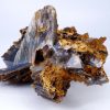 Magnifique spécimen de Baryte sur limonite. Lamelles bien définies de couleur bleues sur la face avant et chocolat sur la face arrière.
