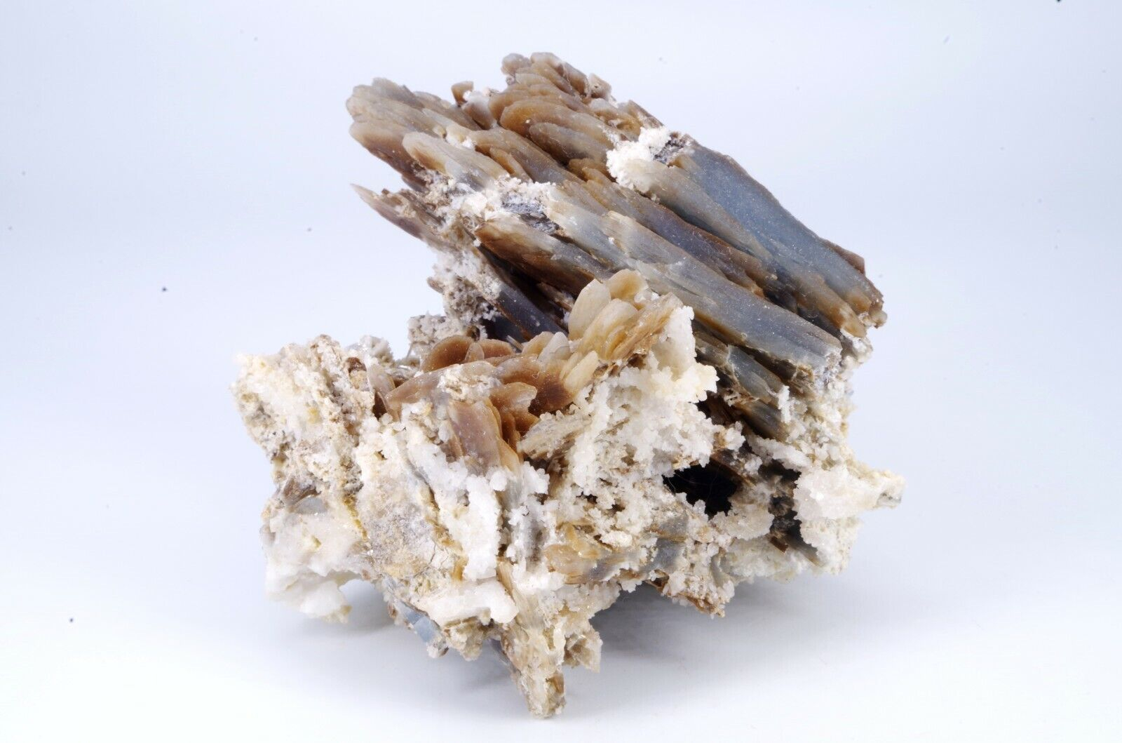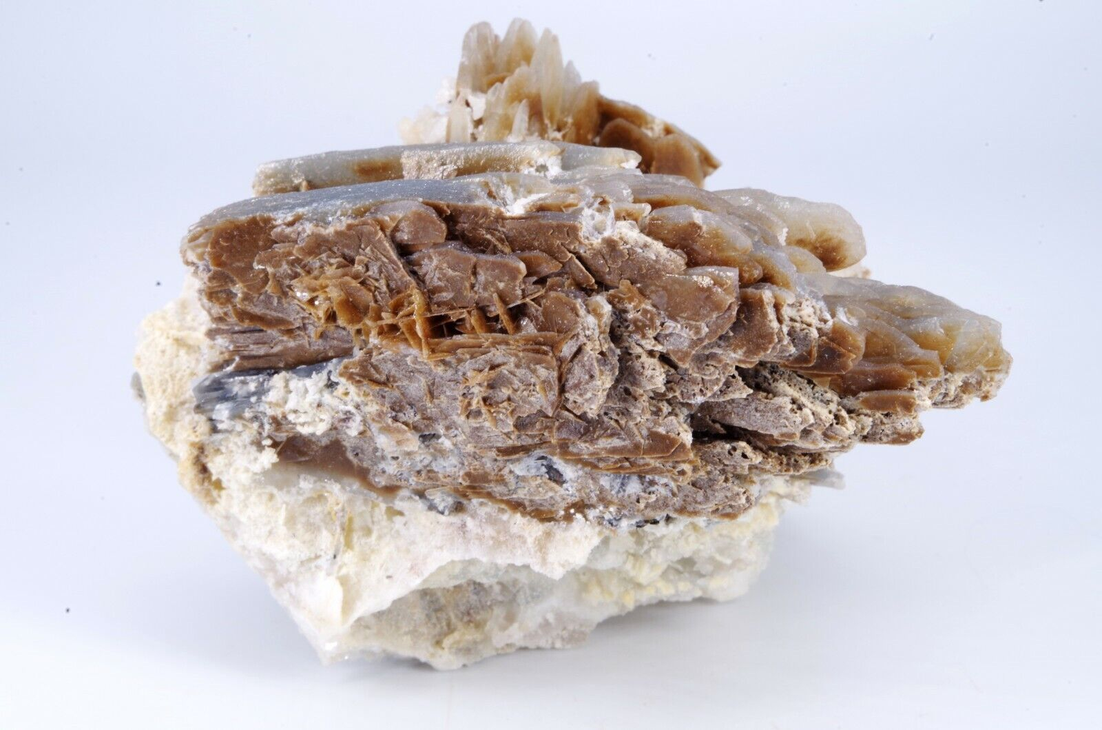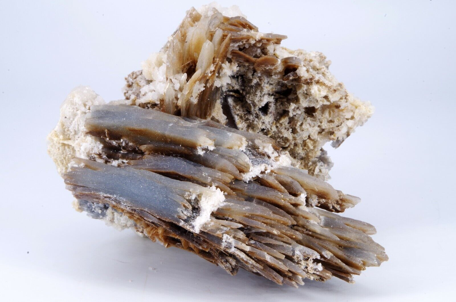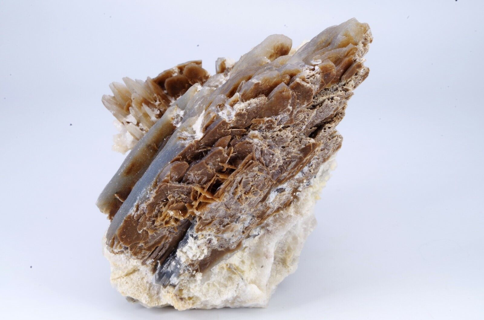 Jolies Lamelles de Baryte bleue, blanche et chocolat sur matrice