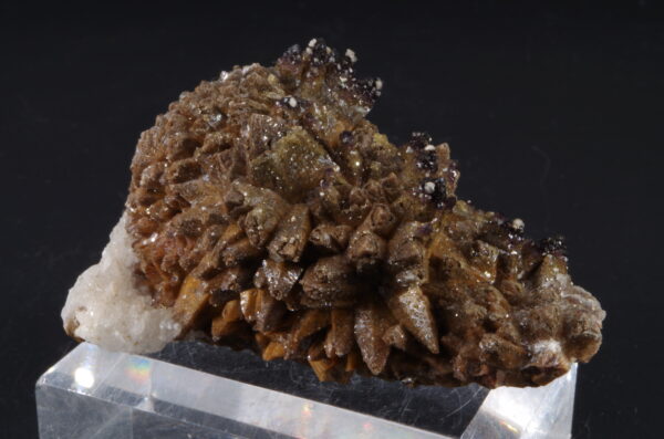 Contrastes de couleurs uniques : La Fluorite mexicaine présente souvent des teintes vibrantes, du violet intense au vert éclatant, qui contrastent magnifiquement avec les cristaux de Calcite « Dogtooth ».