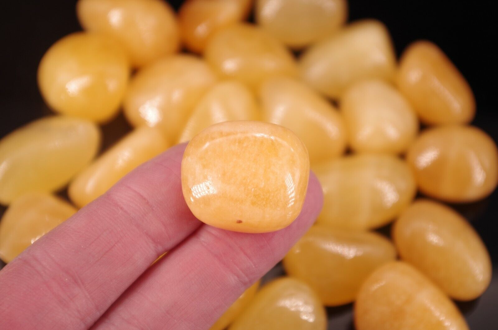 Pierres roulées de calcite orange de Madagascar d’excellente qualité