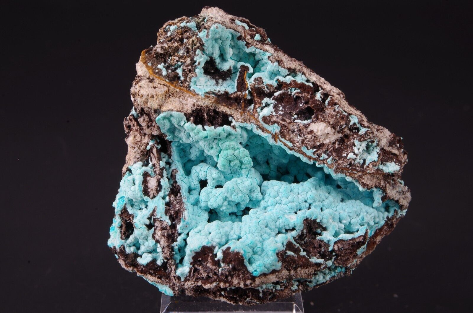 Jolie matrice tapissée de chrysocolle bien coloré offrant un excellent contraste de couleur