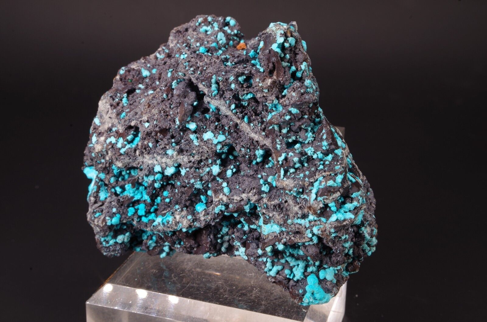 Jolie matrice tapissée de chrysocolle bien coloré offrant un excellent contraste de couleur