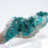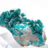 Le dioptase de Kaoko se distingue par sa couleur vert émeraude intense à bleu-vert foncé. Il forme des cristaux prismatiques transparents à translucides, avec un éclat vitreux lorsqu’ils sont bien développés. Ces cristaux se présentent souvent en groupes sur une matrice de quartz.