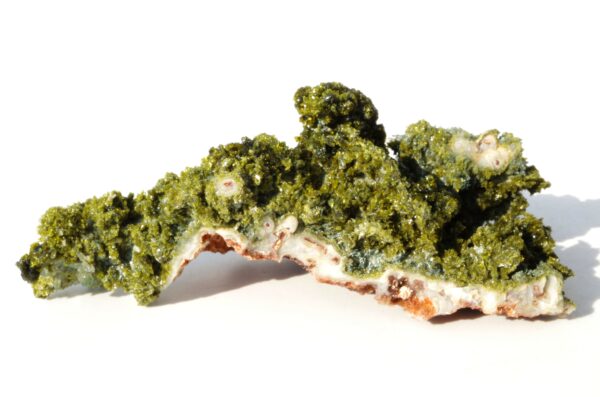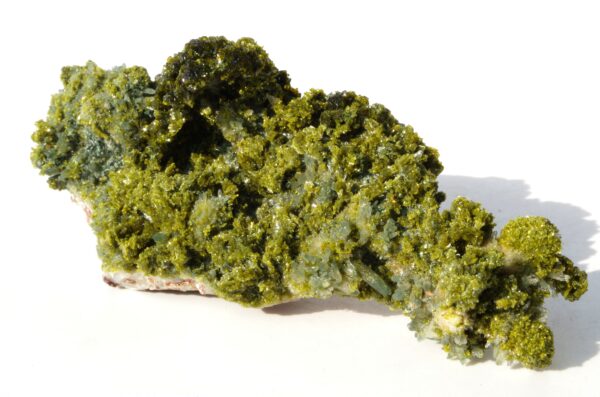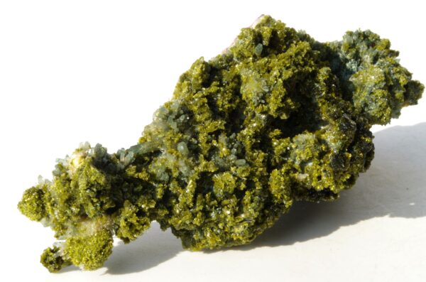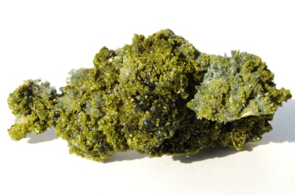 L’épidote est un minéral formé principalement de silicates de calcium, d’aluminium et de fer. Ses teintes distinctives vont du vert olive au vert foncé, parfois rehaussées de reflets dorés ou brunâtres.
