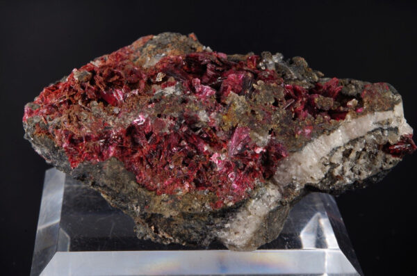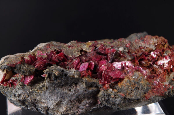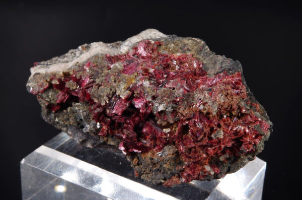 Jolie cristallisation d’ Erythrite pourpre et brillante sur matrice