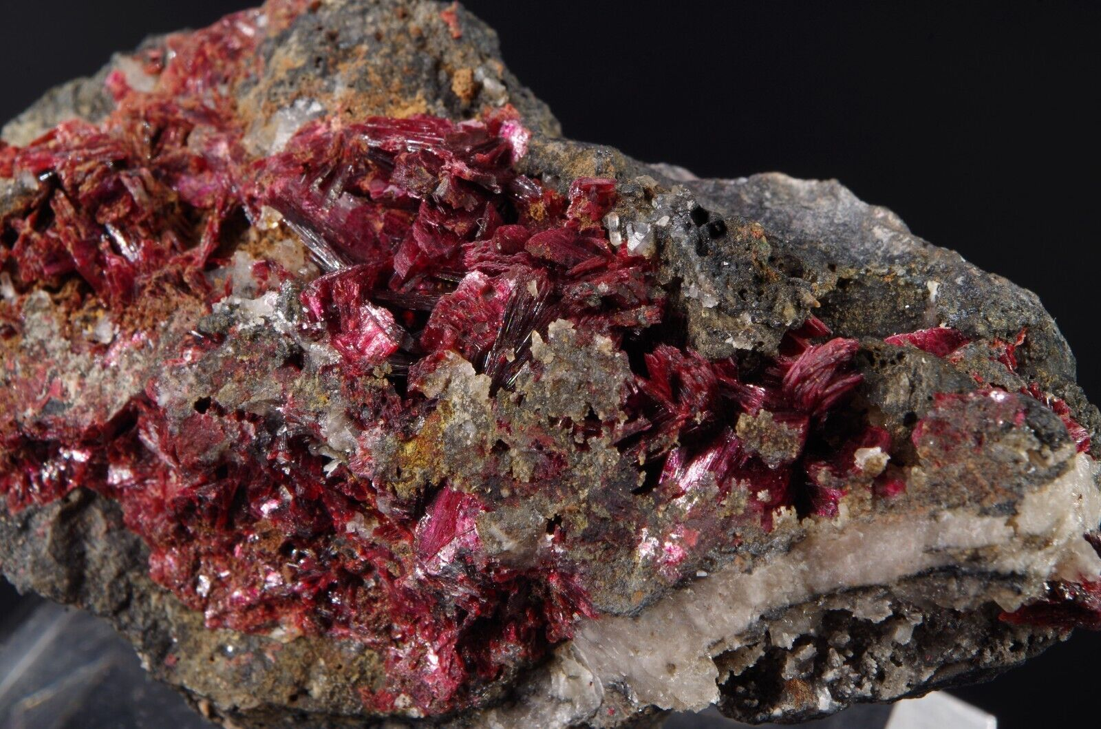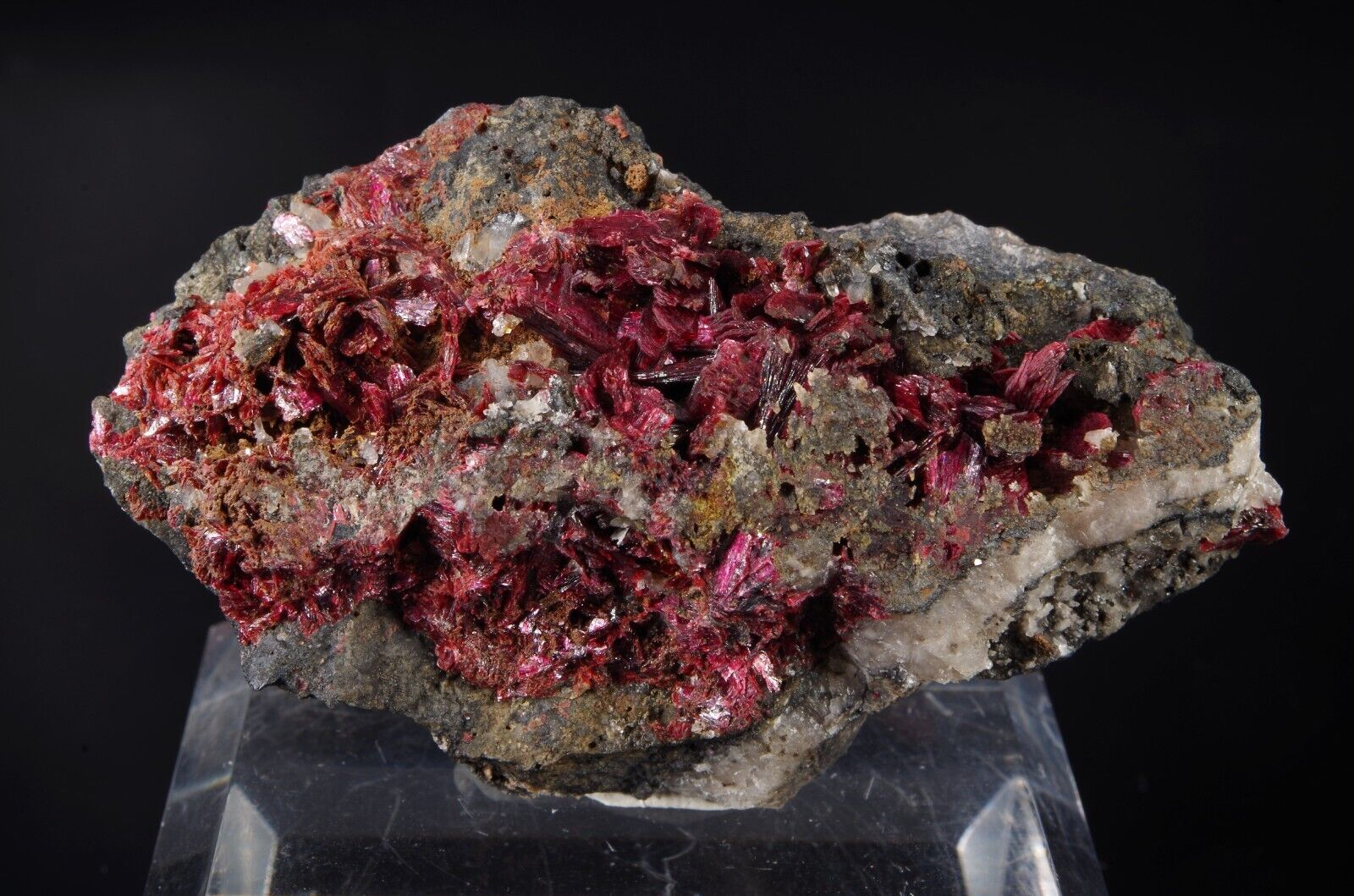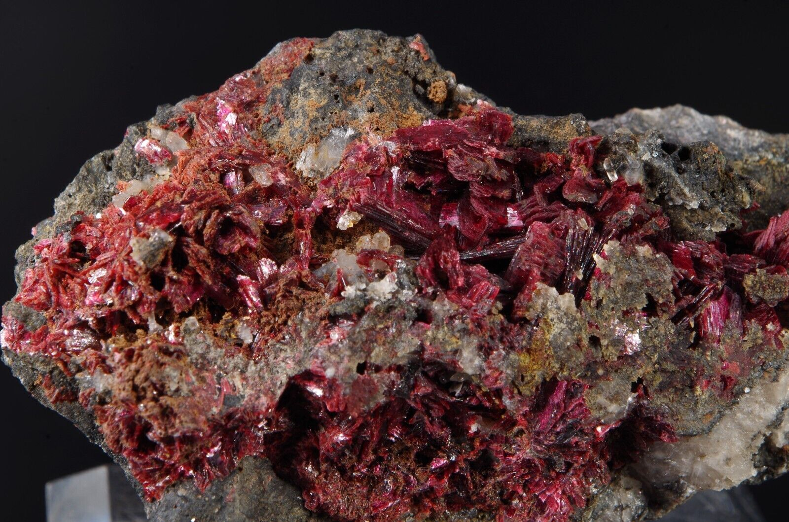 Jolie cristallisation d’ Erythrite pourpre et brillante sur matrice