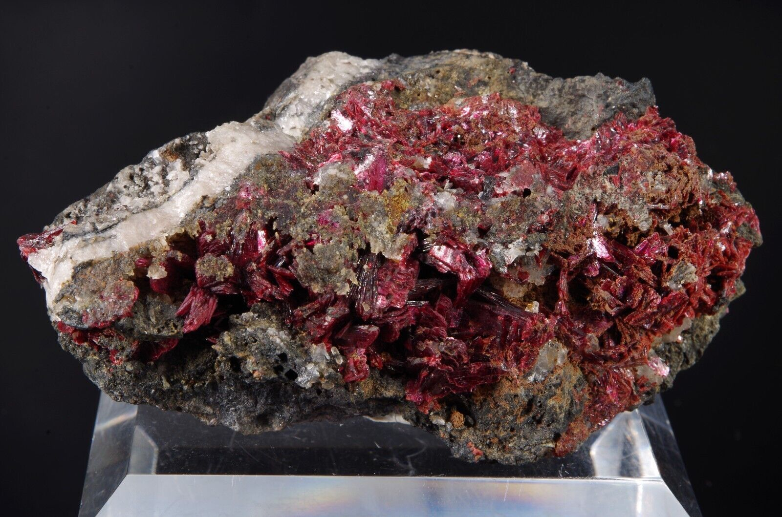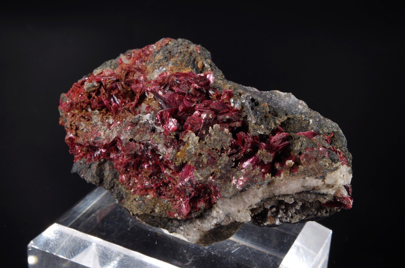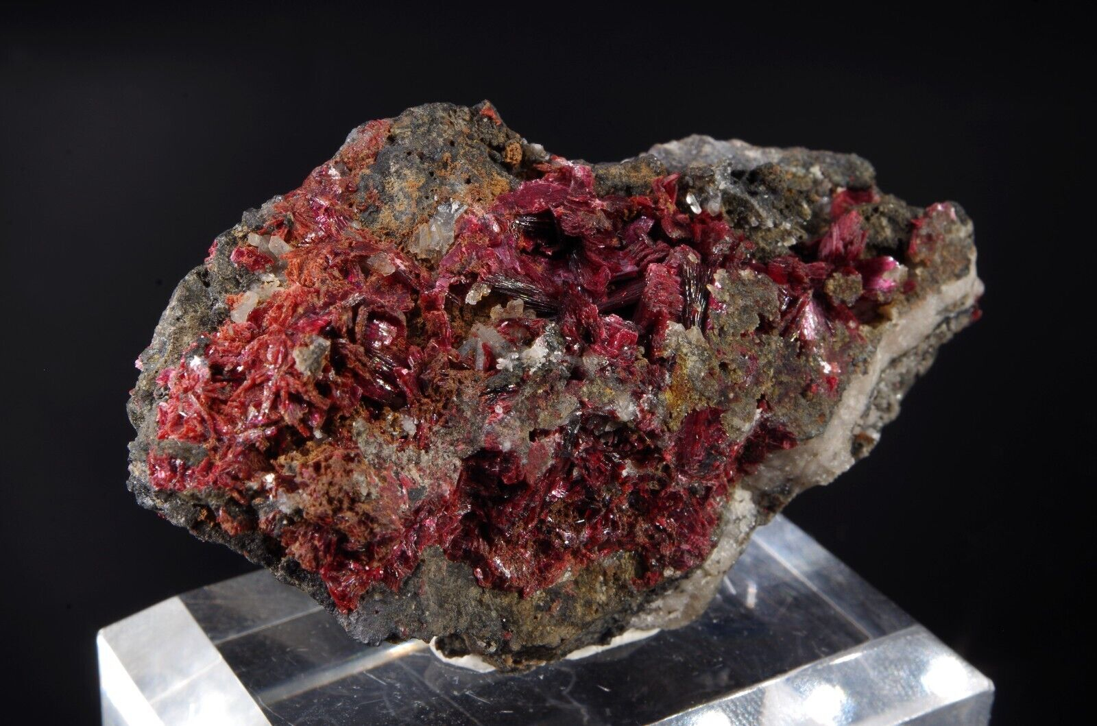 Jolie cristallisation d’ Erythrite pourpre et brillante sur matrice