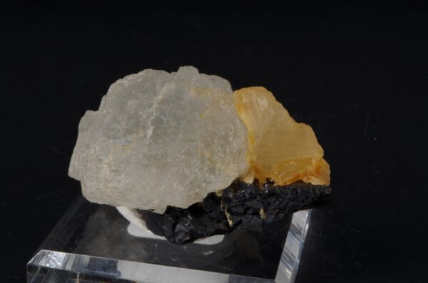 La fluorite de cette région est souvent associée à d’autres minéraux comme la galène, la pyrite, le quartz et la calcite, ce qui crée des échantillons esthétiques et contrastés. L’association avec des sulfures métalliques donne parfois aux cristaux de fluorite un éclat ou une teinte métallisée sur les surfaces en contact.