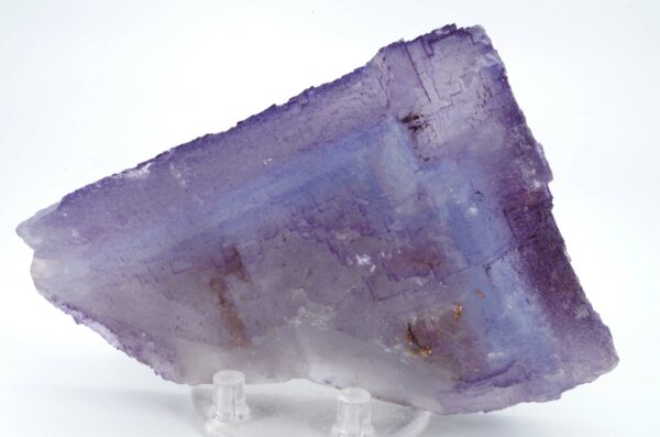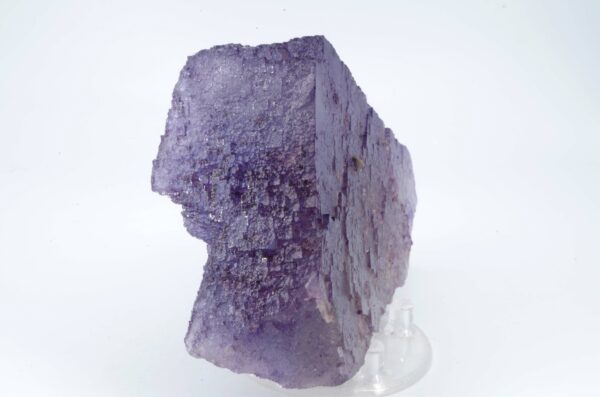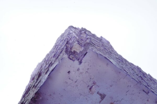 Excellent spécimen de Fluorite translucide avec une surface aux multiples empruntes cubiques de croissance et partiellement surcristalisé. L’angle au sommet est également joliment dessiné.