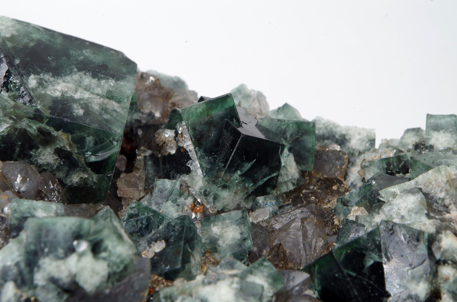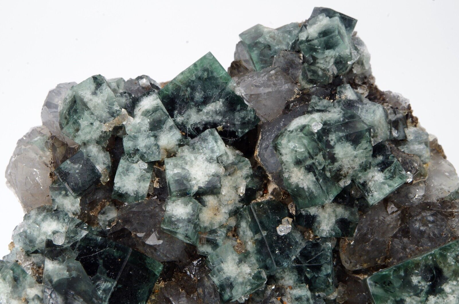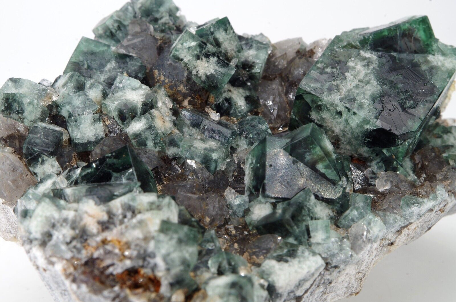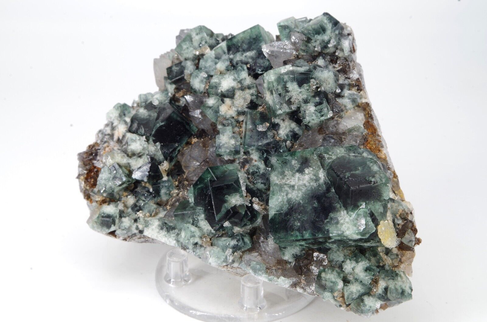 Joli spécimen de fluorite de dominance vert foncé et blanc à cœur légèrement bleu marine