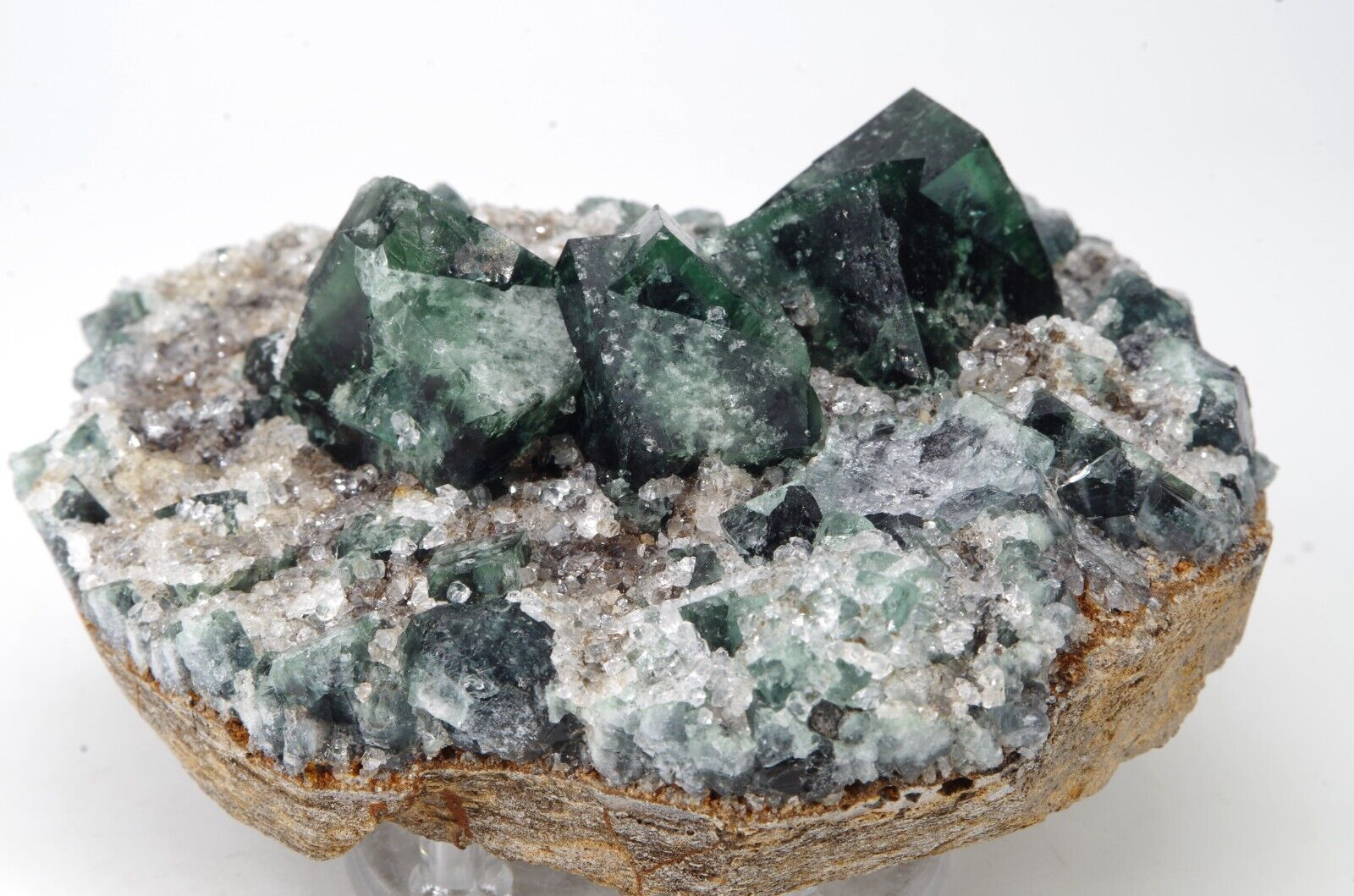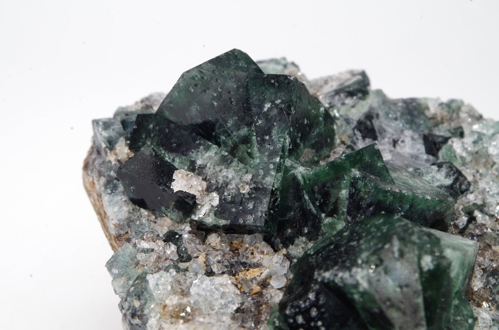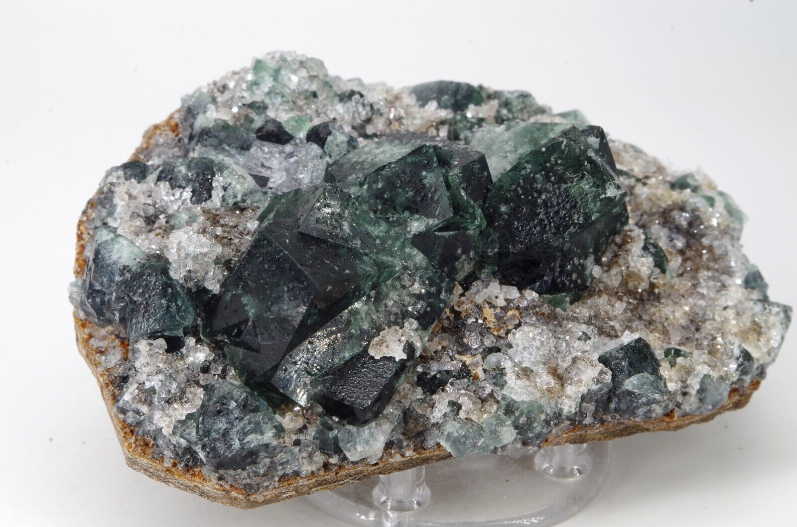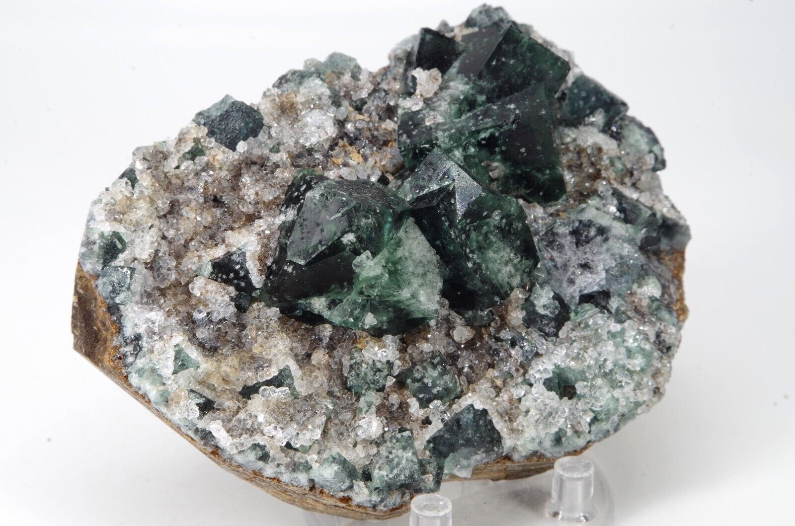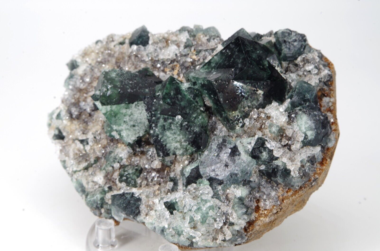Joli spécimen de fluorite de dominance vert foncé et blanc à cœur légèrement bleu marine