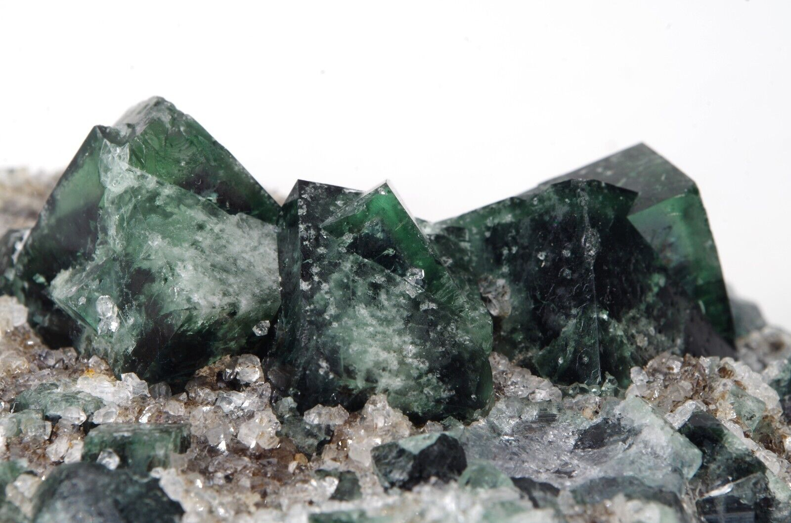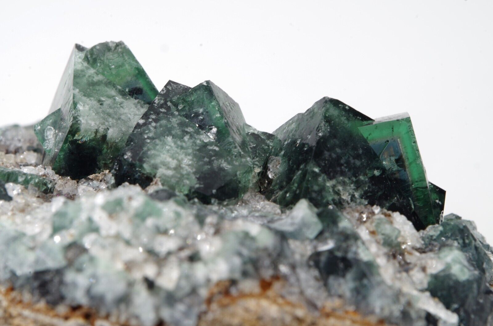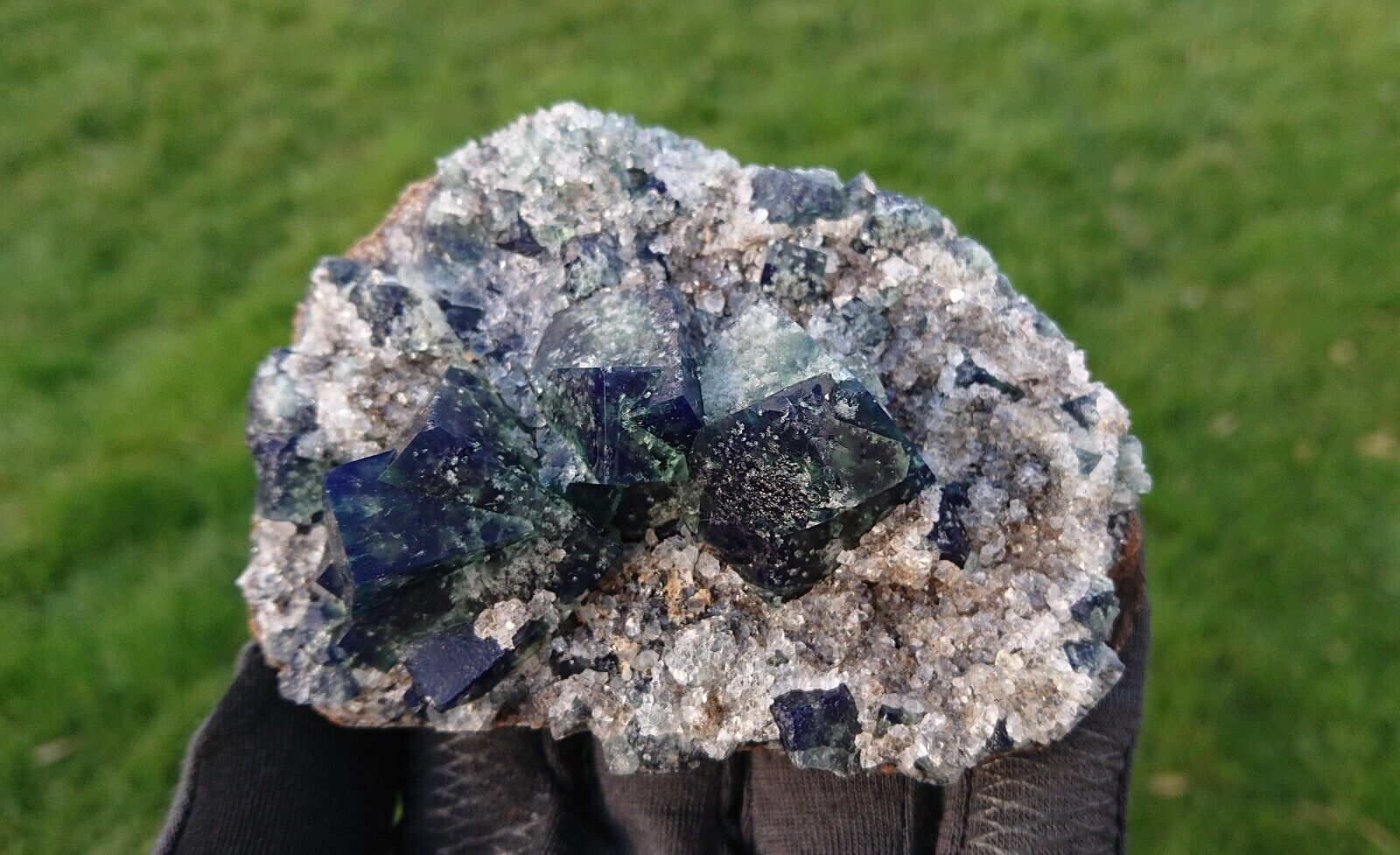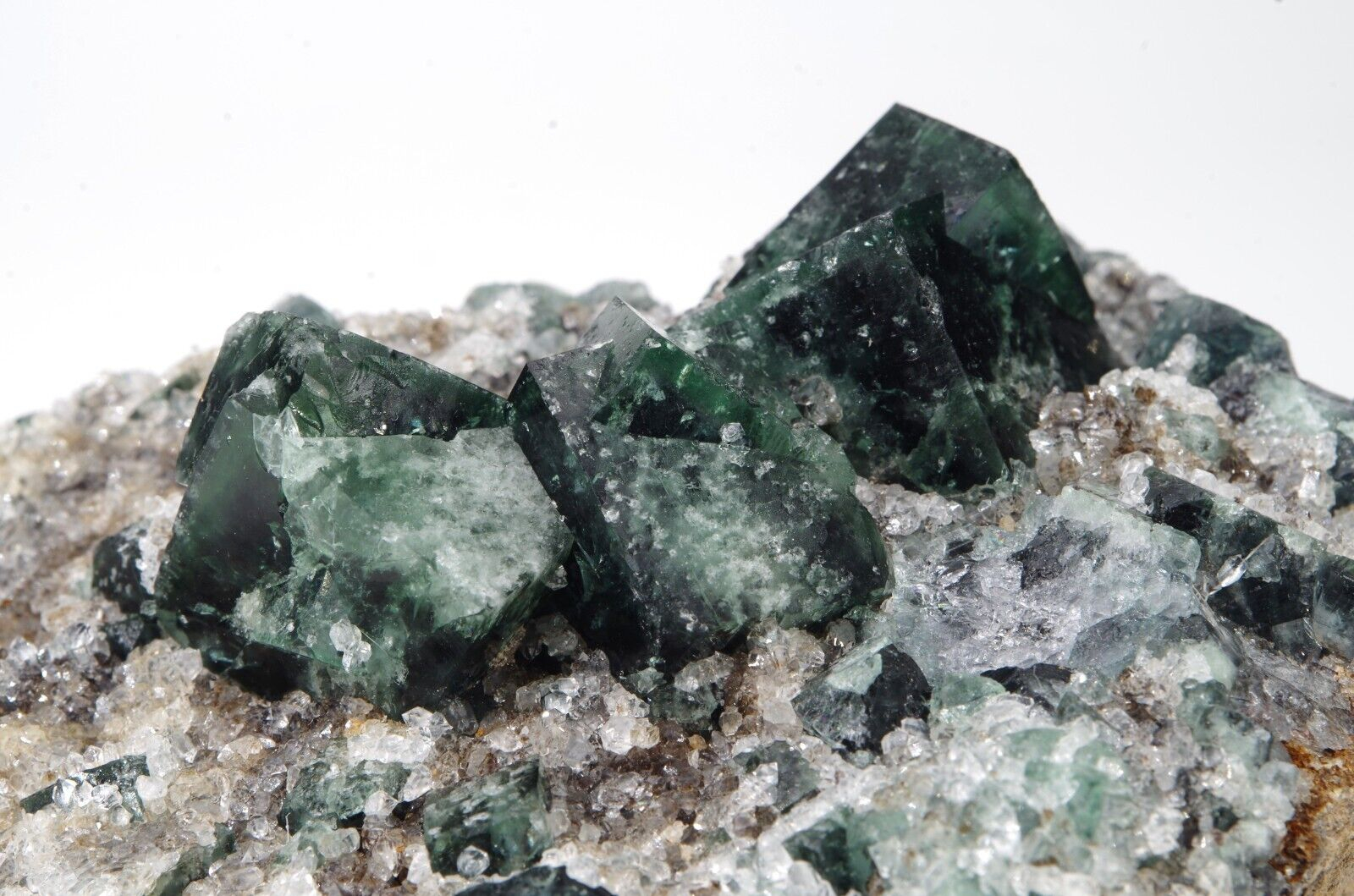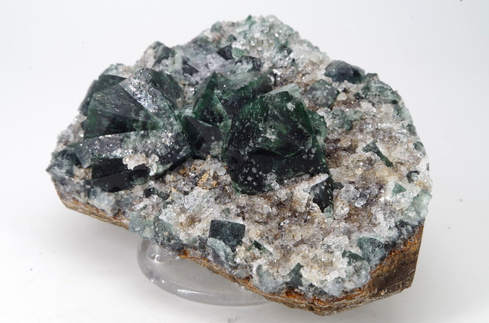 Joli spécimen de fluorite de dominance vert foncé et blanc à cœur légèrement bleu marine