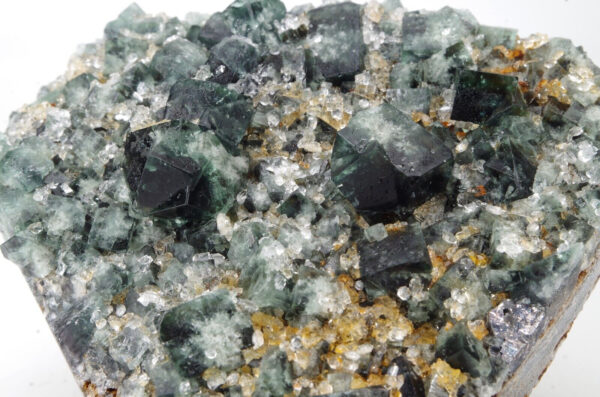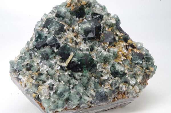 Joli spécimen de fluorite de dominance vert foncé et blanc à cœur légèrement bleu marine
