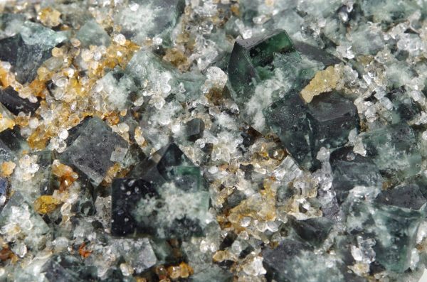 la base est composée de petites formations de fluorite recouverte de quartz microcristallins