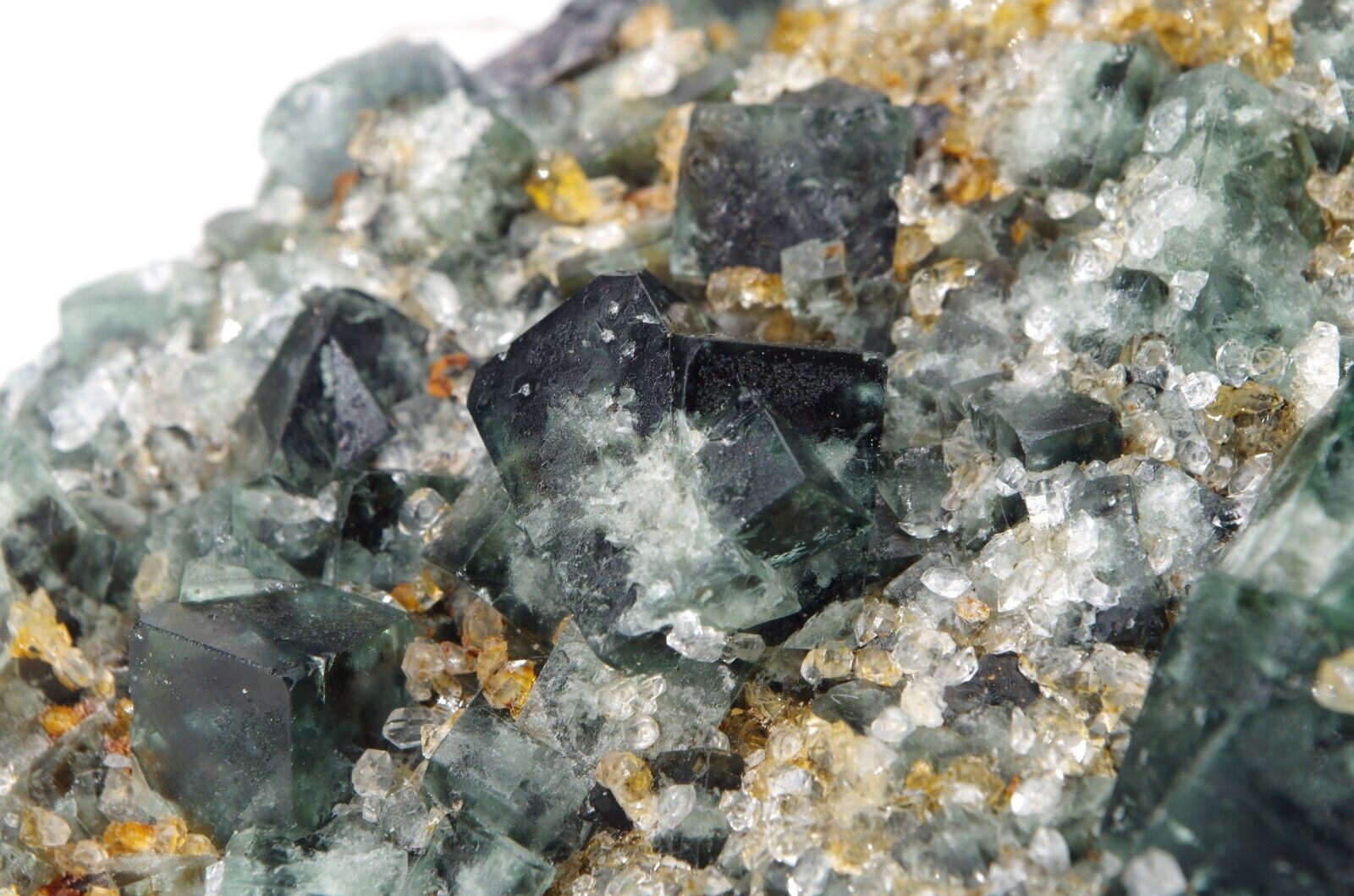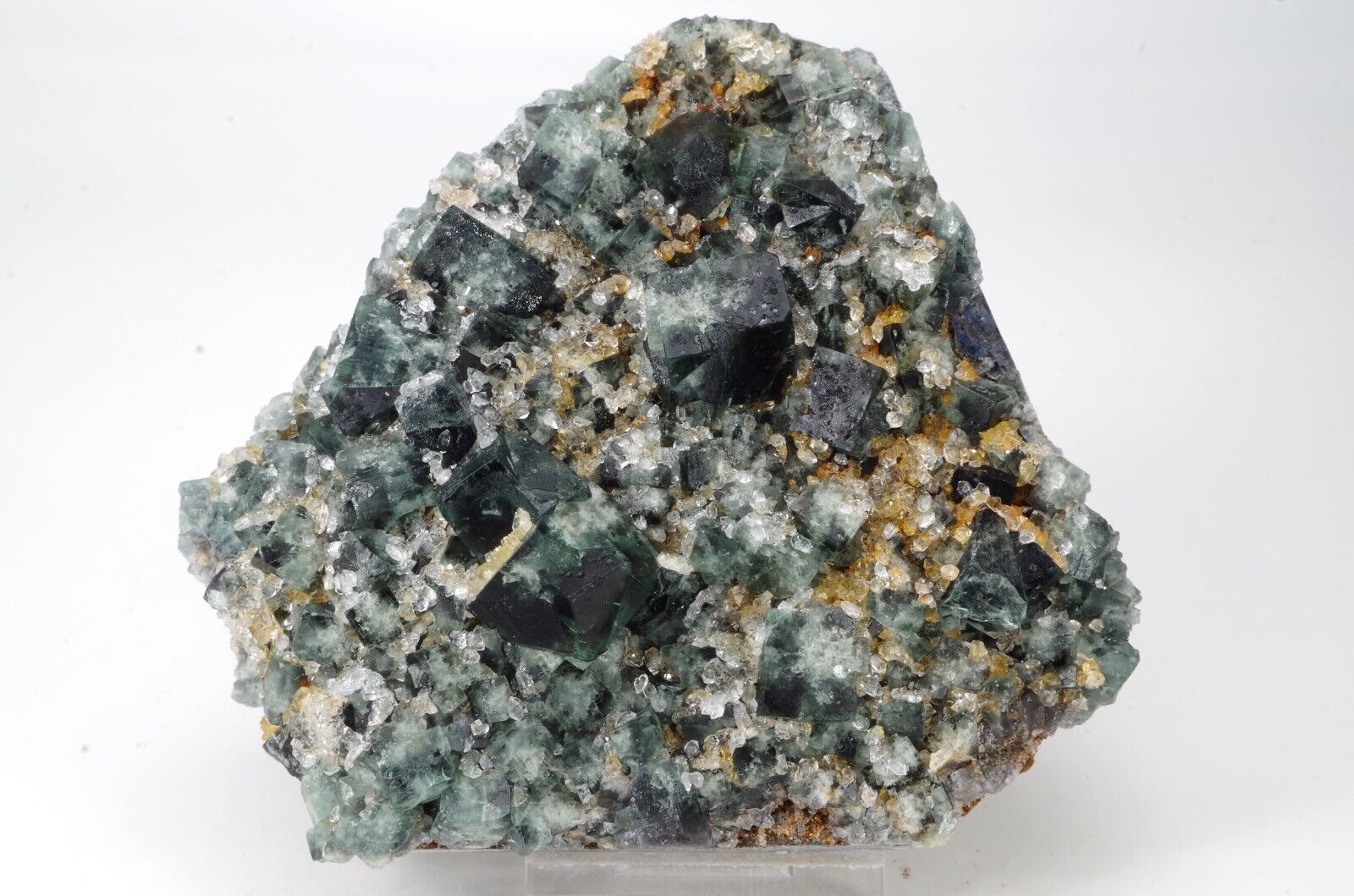 Joli spécimen de fluorite de dominance vert foncé et blanc à cœur légèrement bleu marine