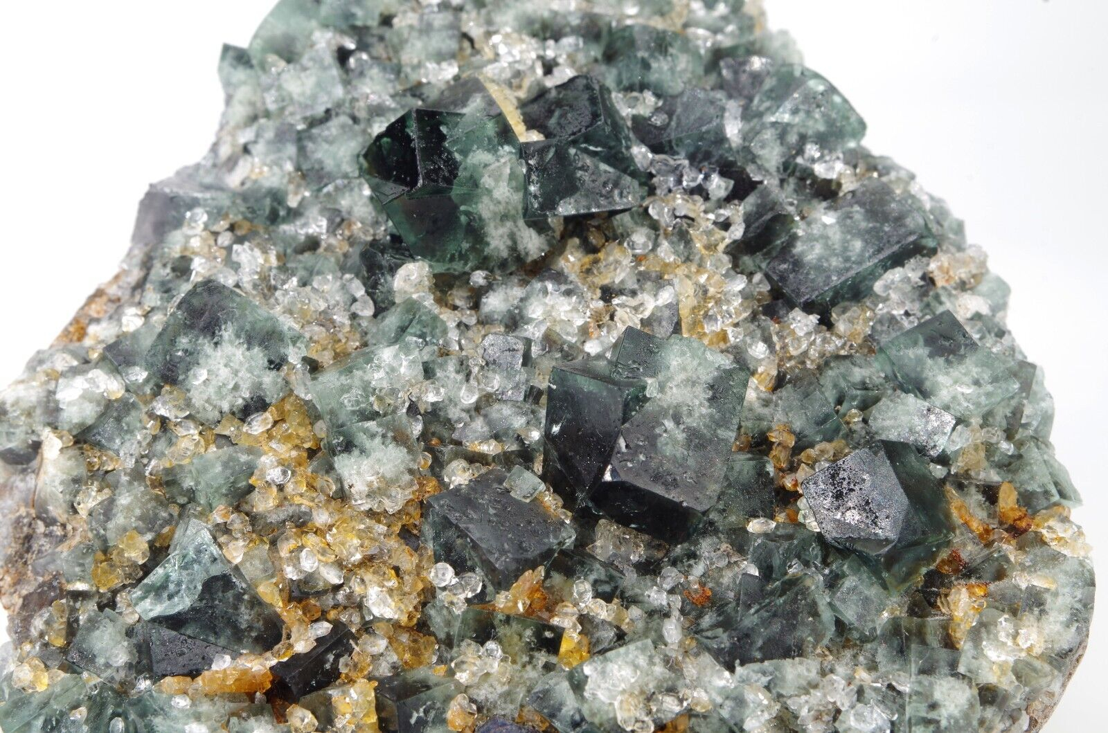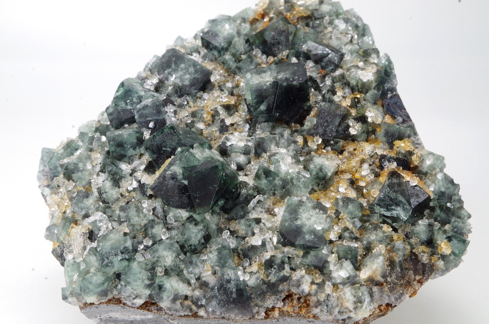 la base est composée de petites formations de fluorite recouverte de quartz microcristallins