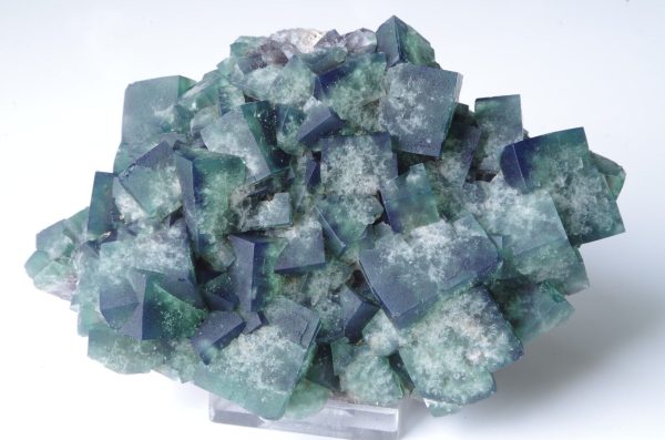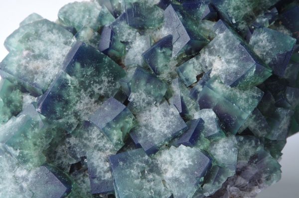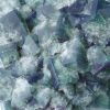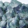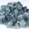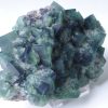 Les cristaux de fluorite vont du vert feuille profond gemme à un vert de mer plus bleuâtre avec des centres tachetés blanchâtre.