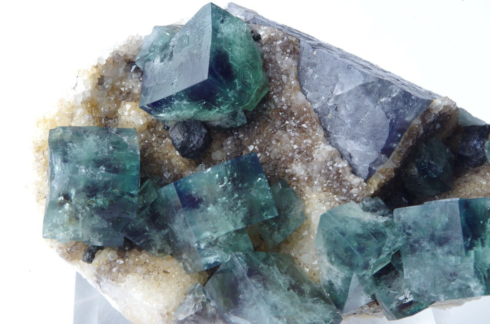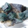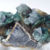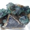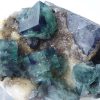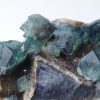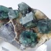 Les cristaux de fluorite vont du vert feuille profond gemme à un vert de mer plus bleuâtre avec des centres tachetés blanchâtre.