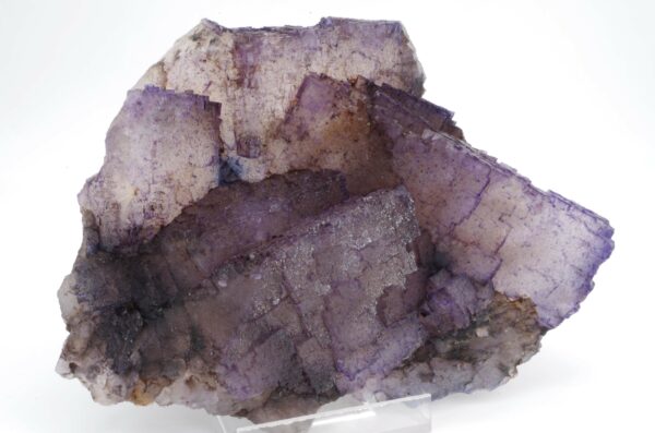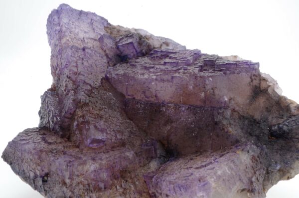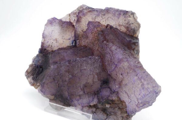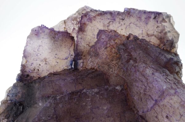 Grand spécimen de Fluorite à cœur translucide et bords violets présentant de jolis reliefs de croissance.