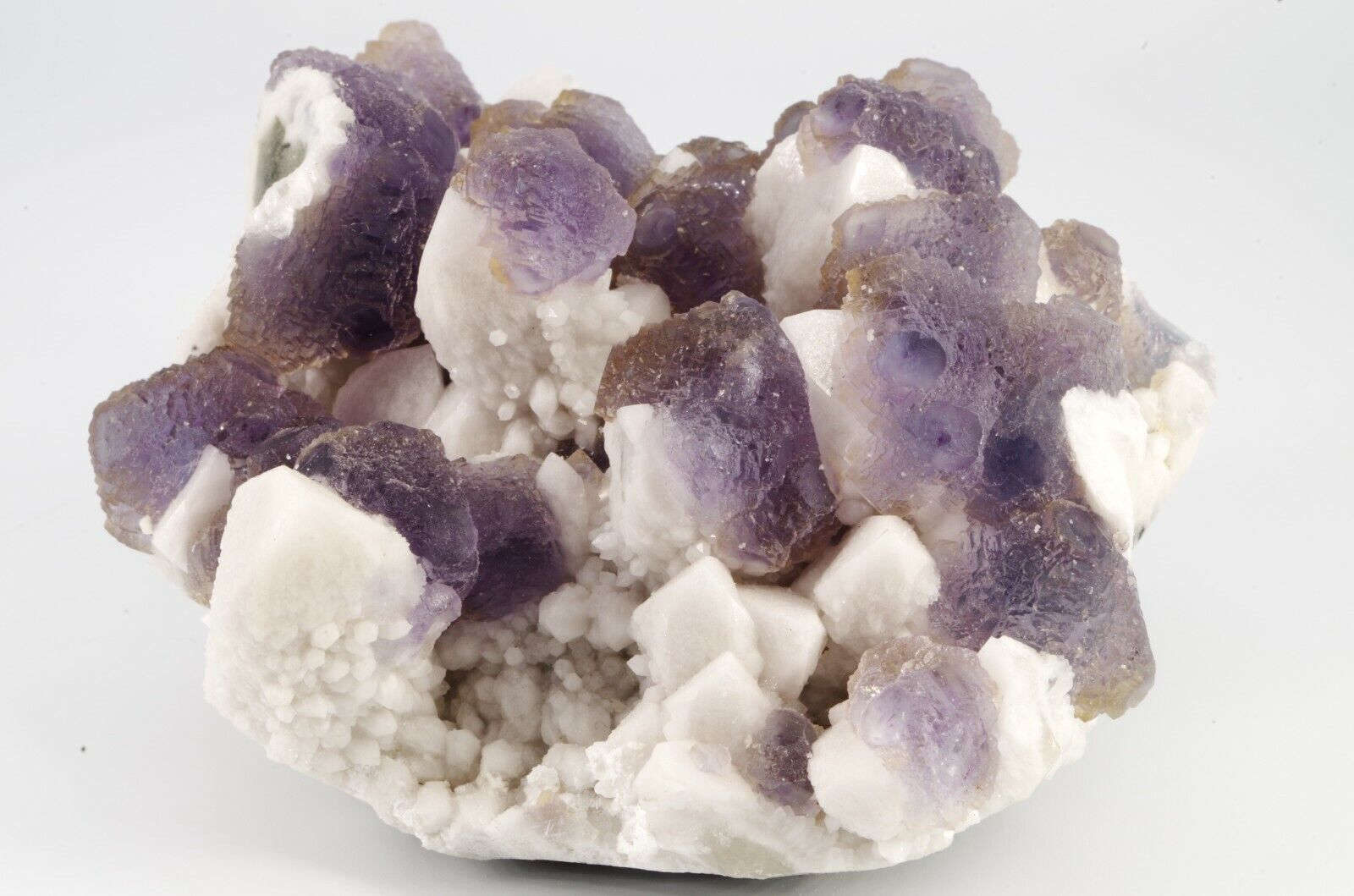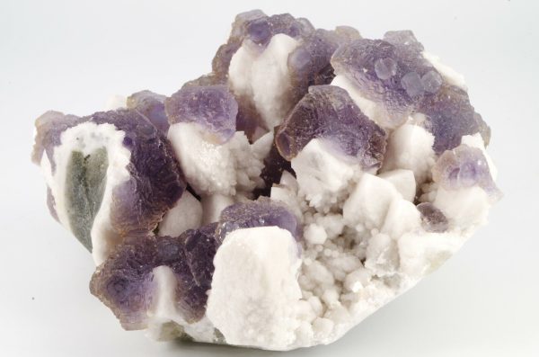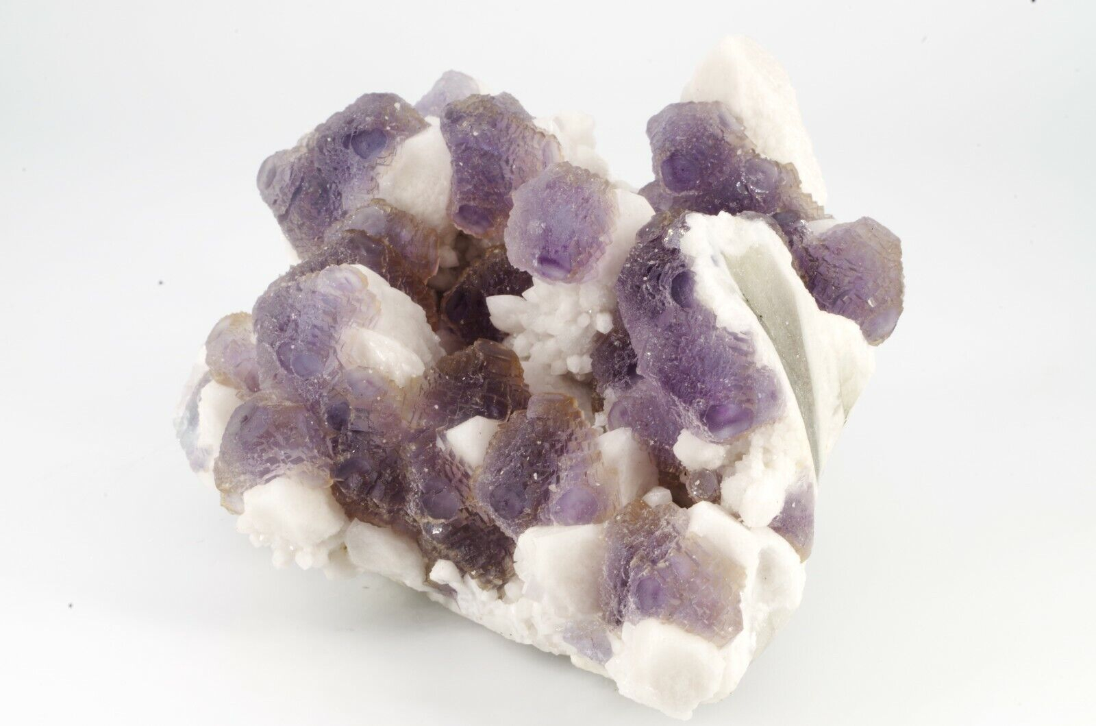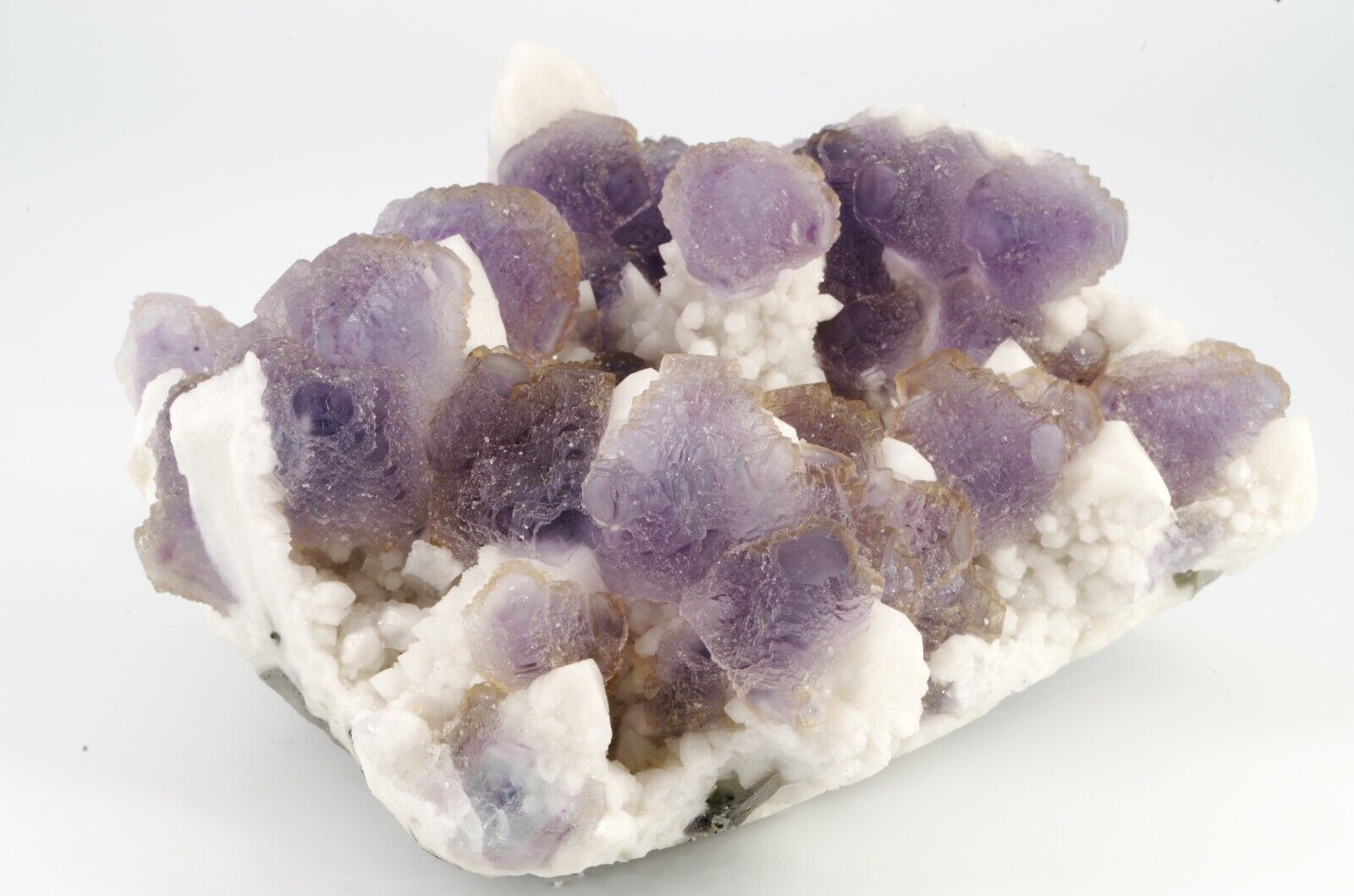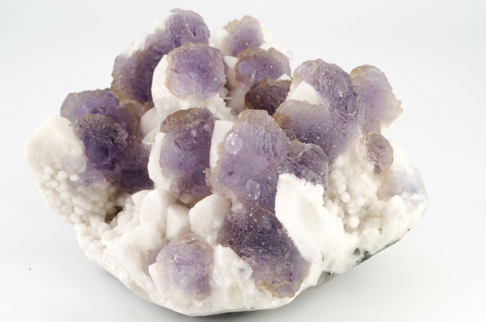 Magnifique fluorite violette translucide sur quartz blanc immaculé