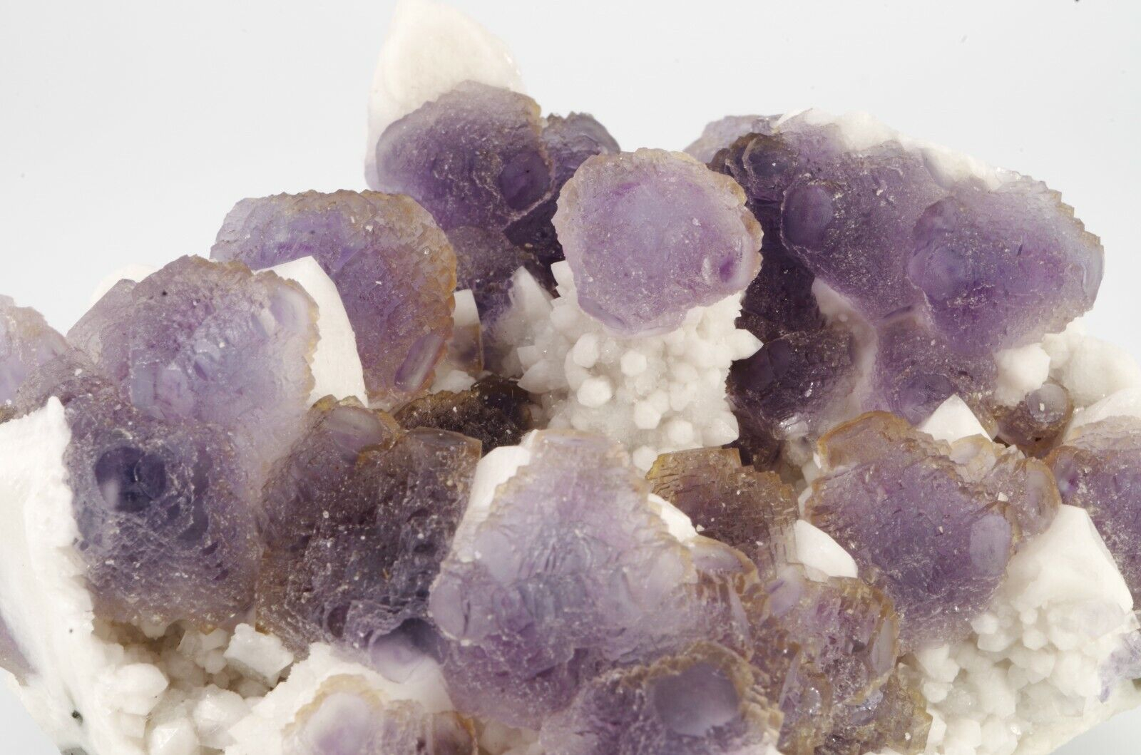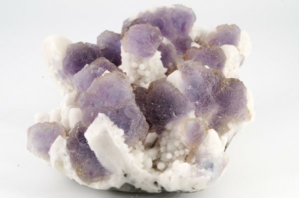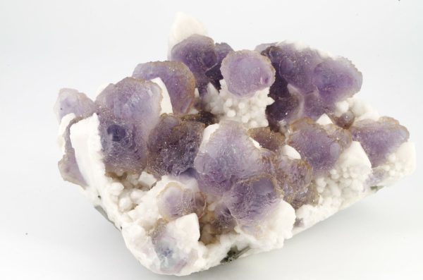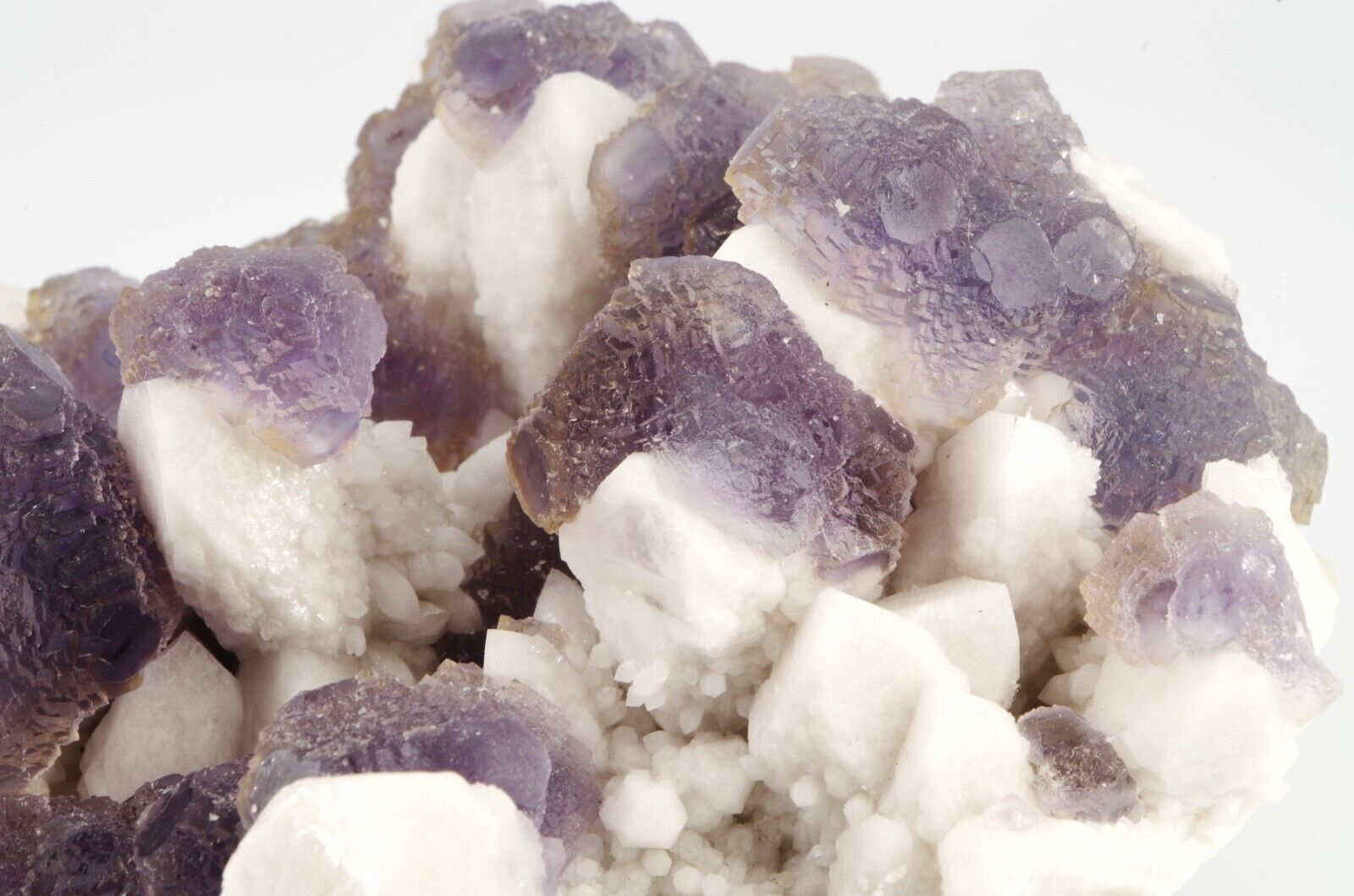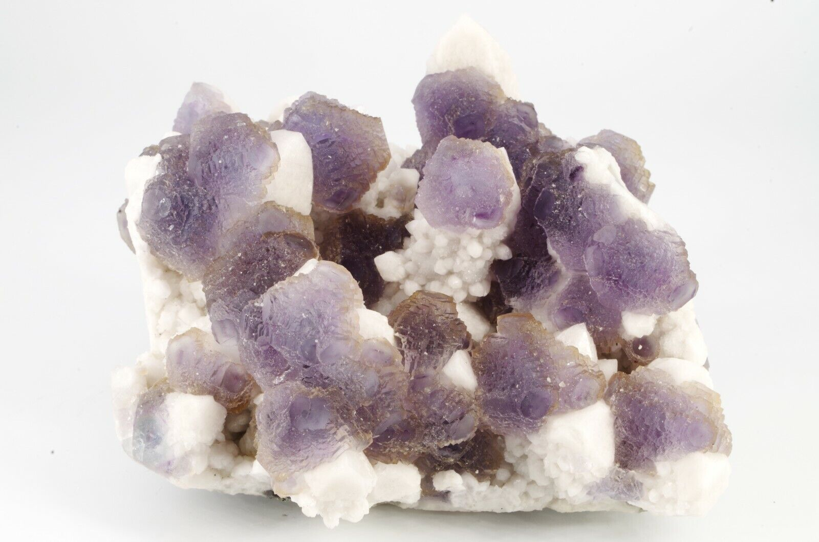 Magnifique fluorite violette translucide sur quartz blanc immaculé
