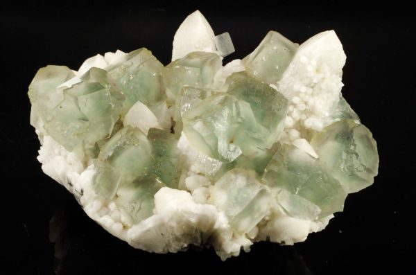Excellente fluorite verte translucide sur quartz blanc immaculé