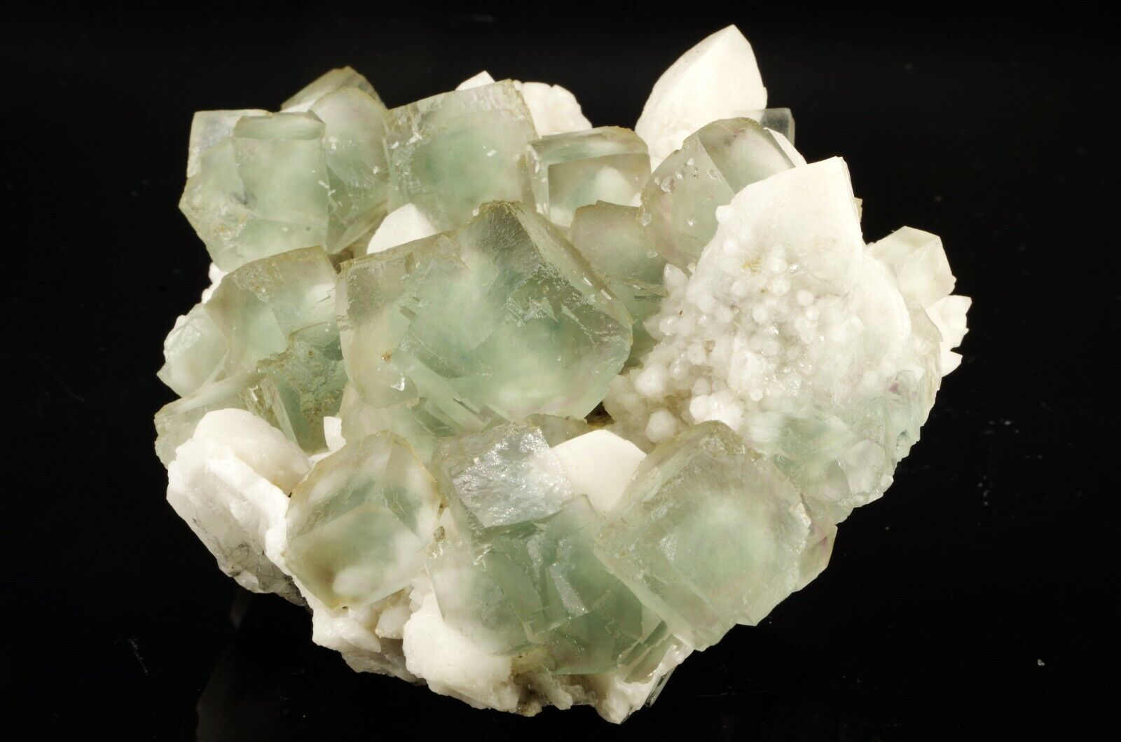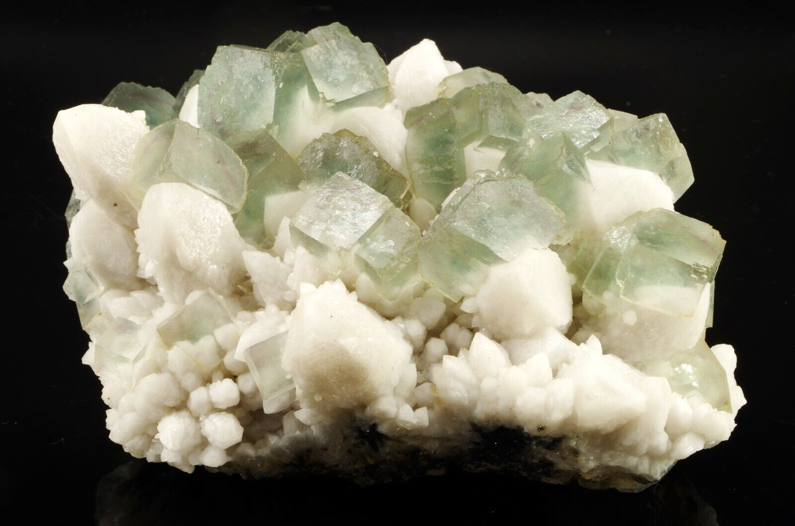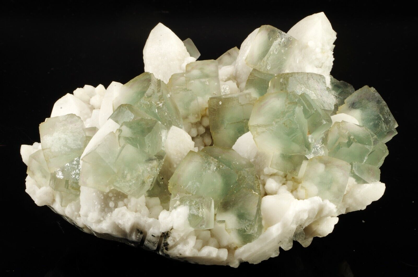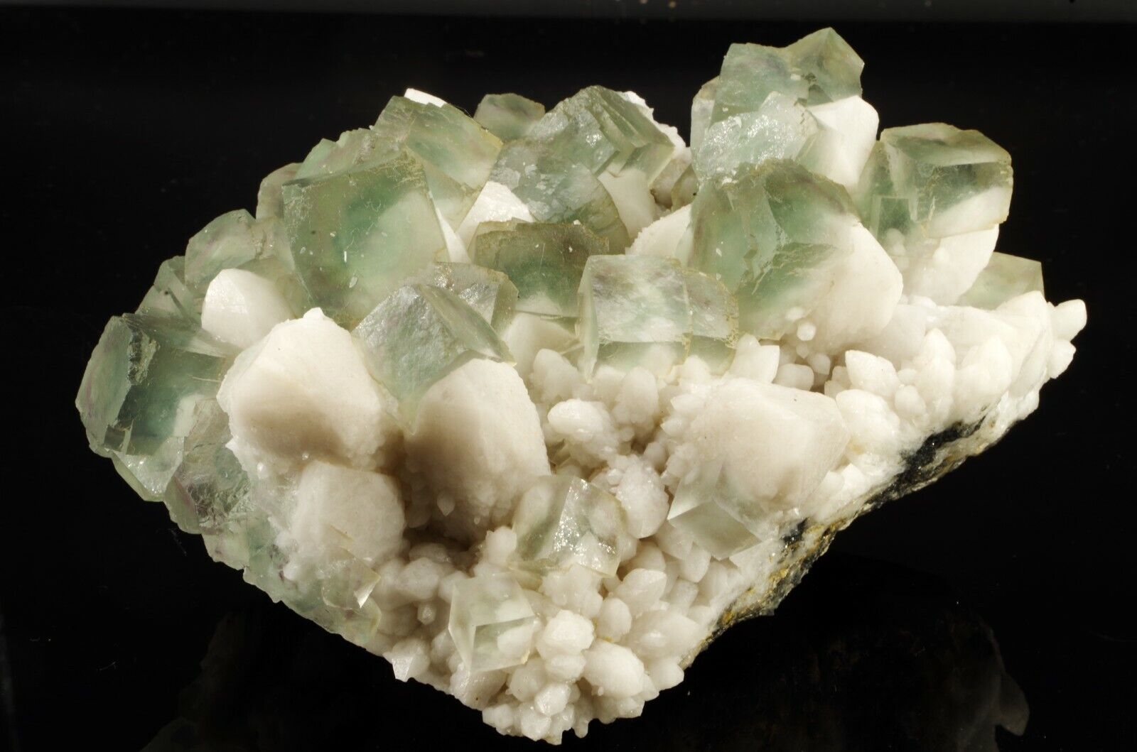 Excellente fluorite verte translucide sur quartz blanc immaculé