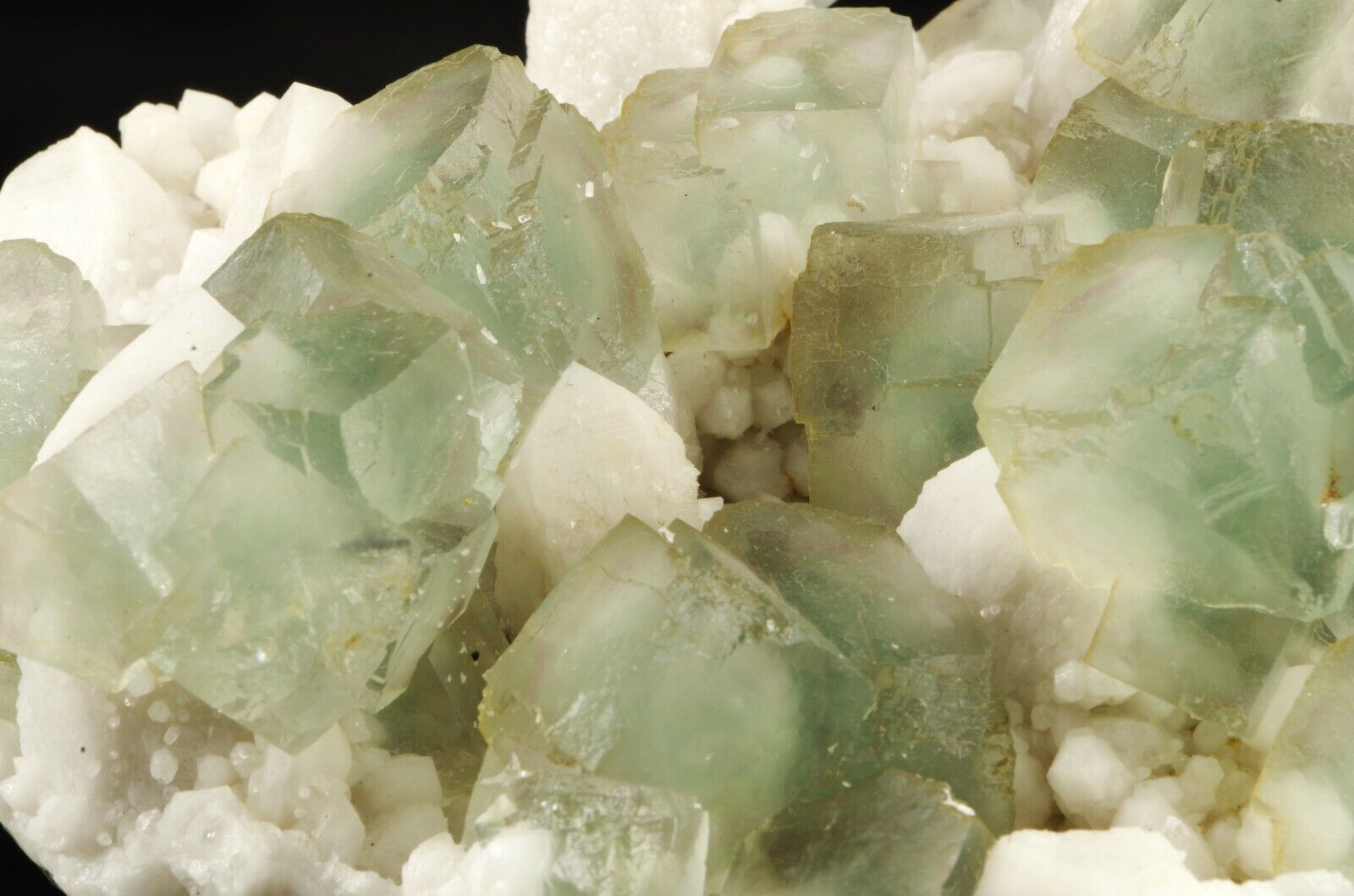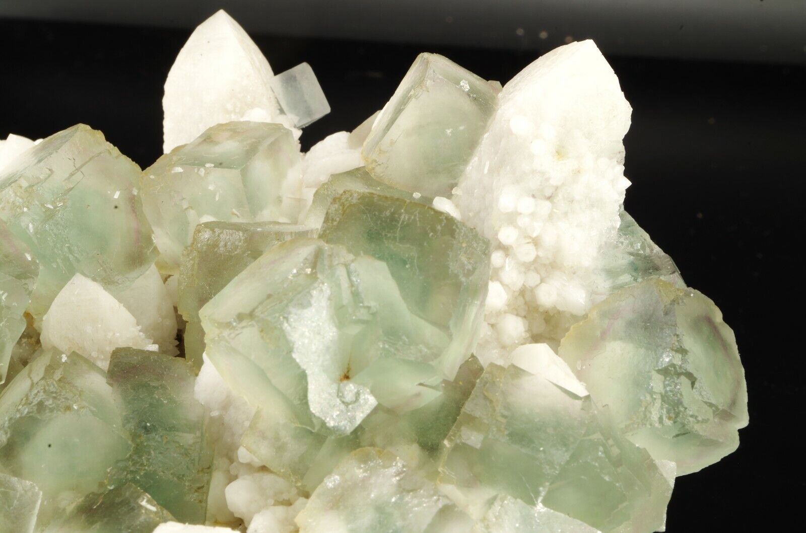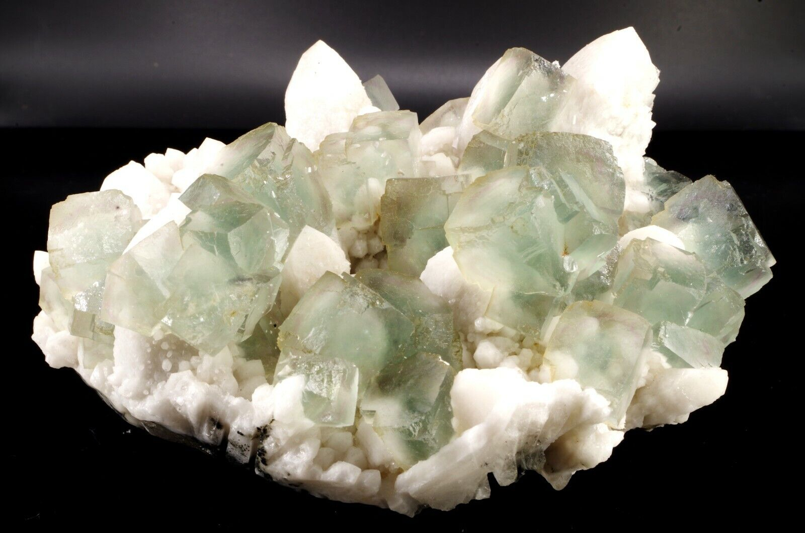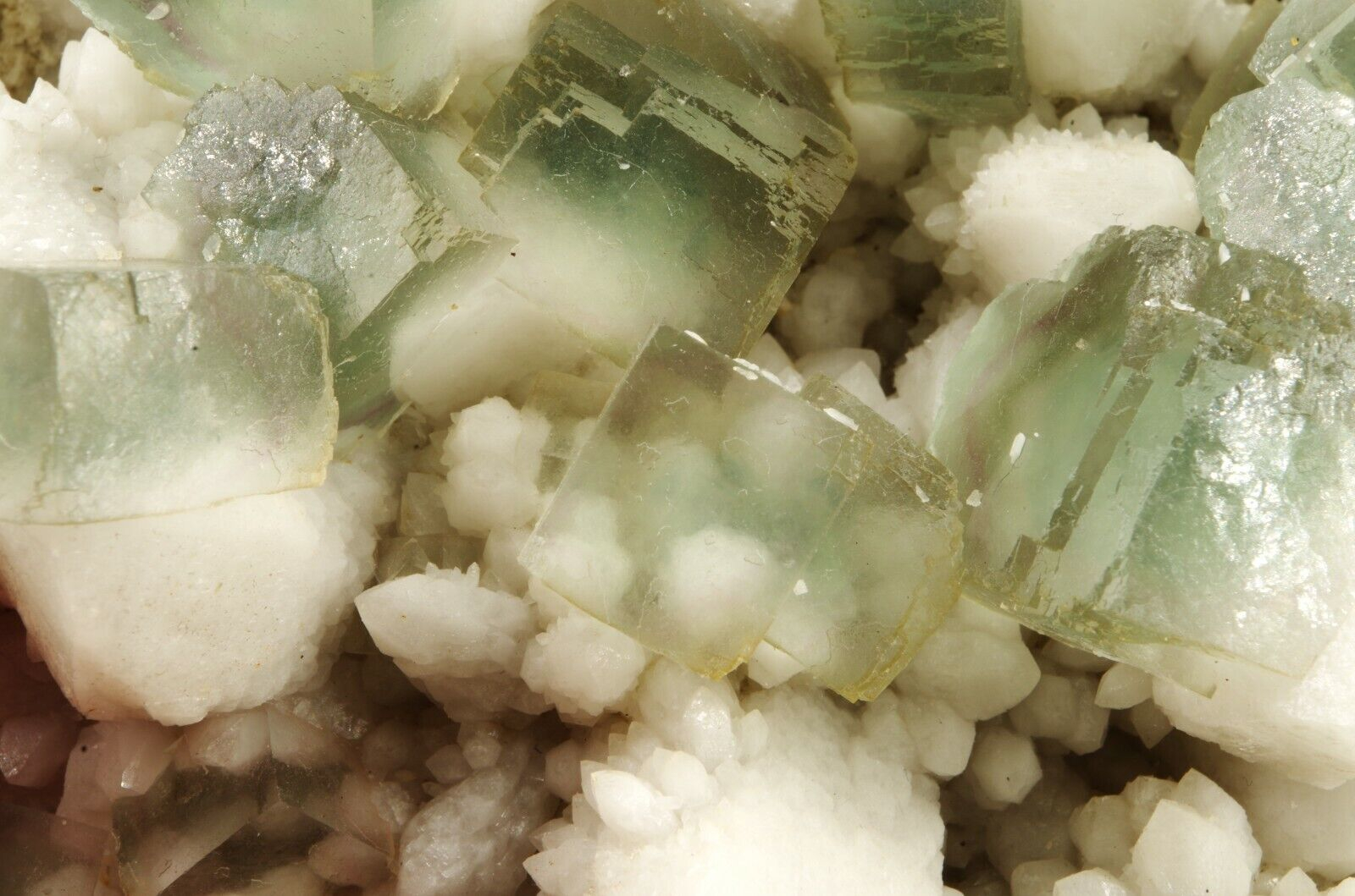 Excellente fluorite verte translucide sur quartz blanc immaculé