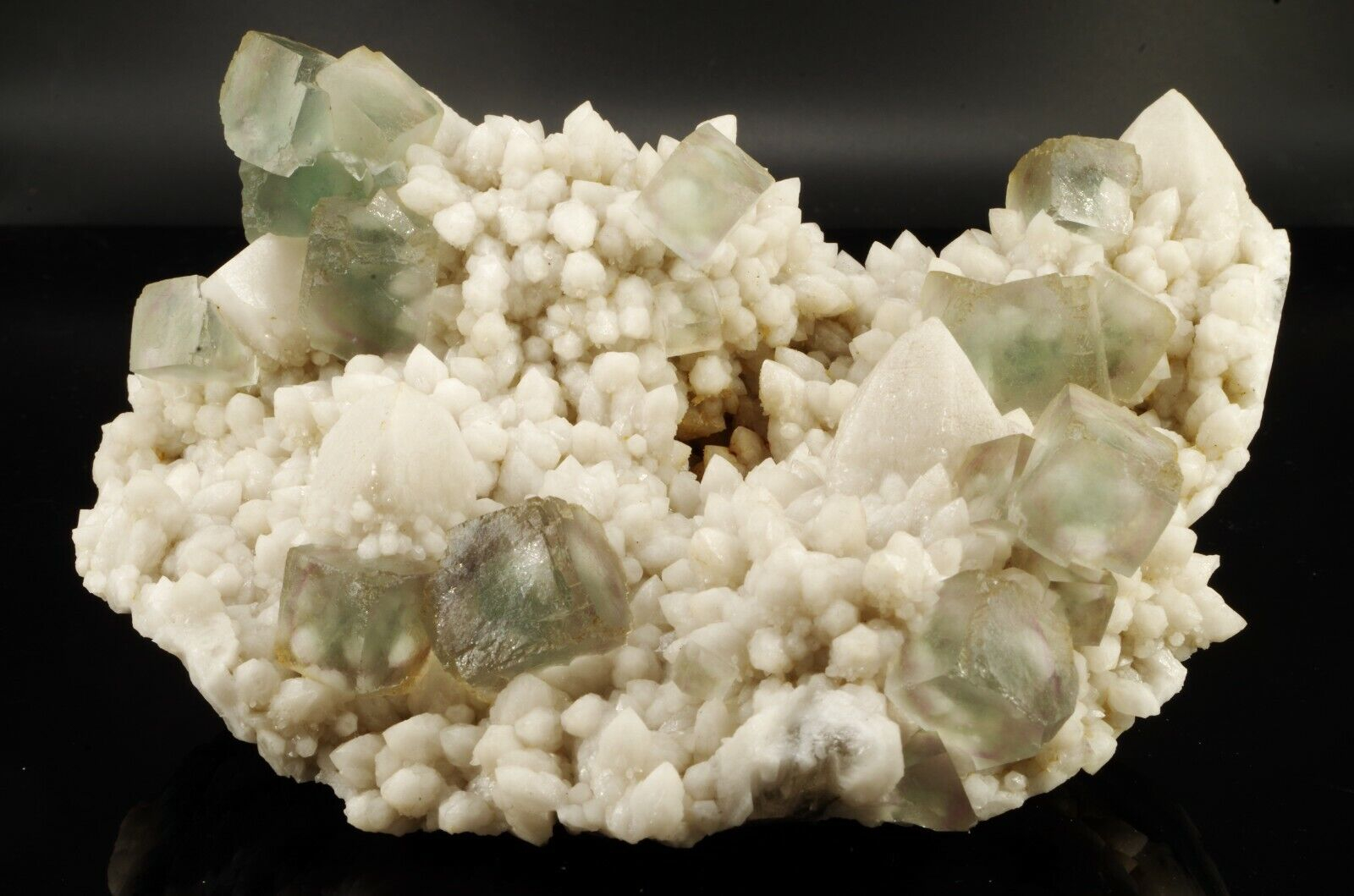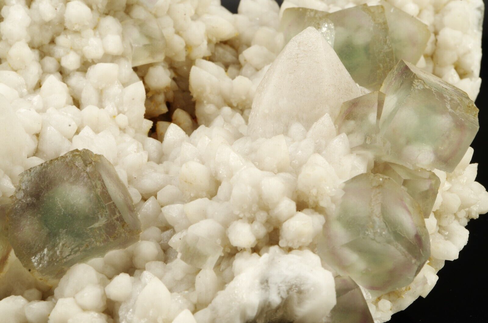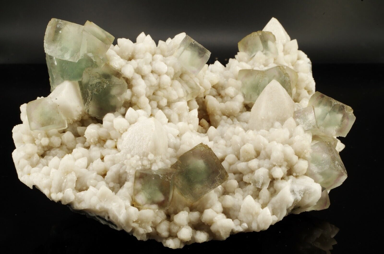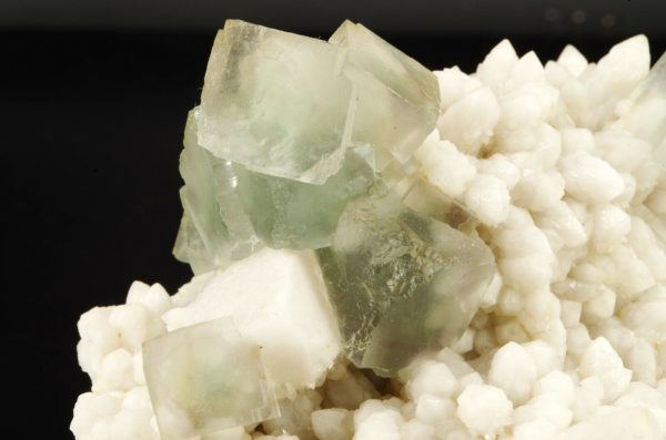 Excellente fluorite verte translucide sur quartz blanc immaculé