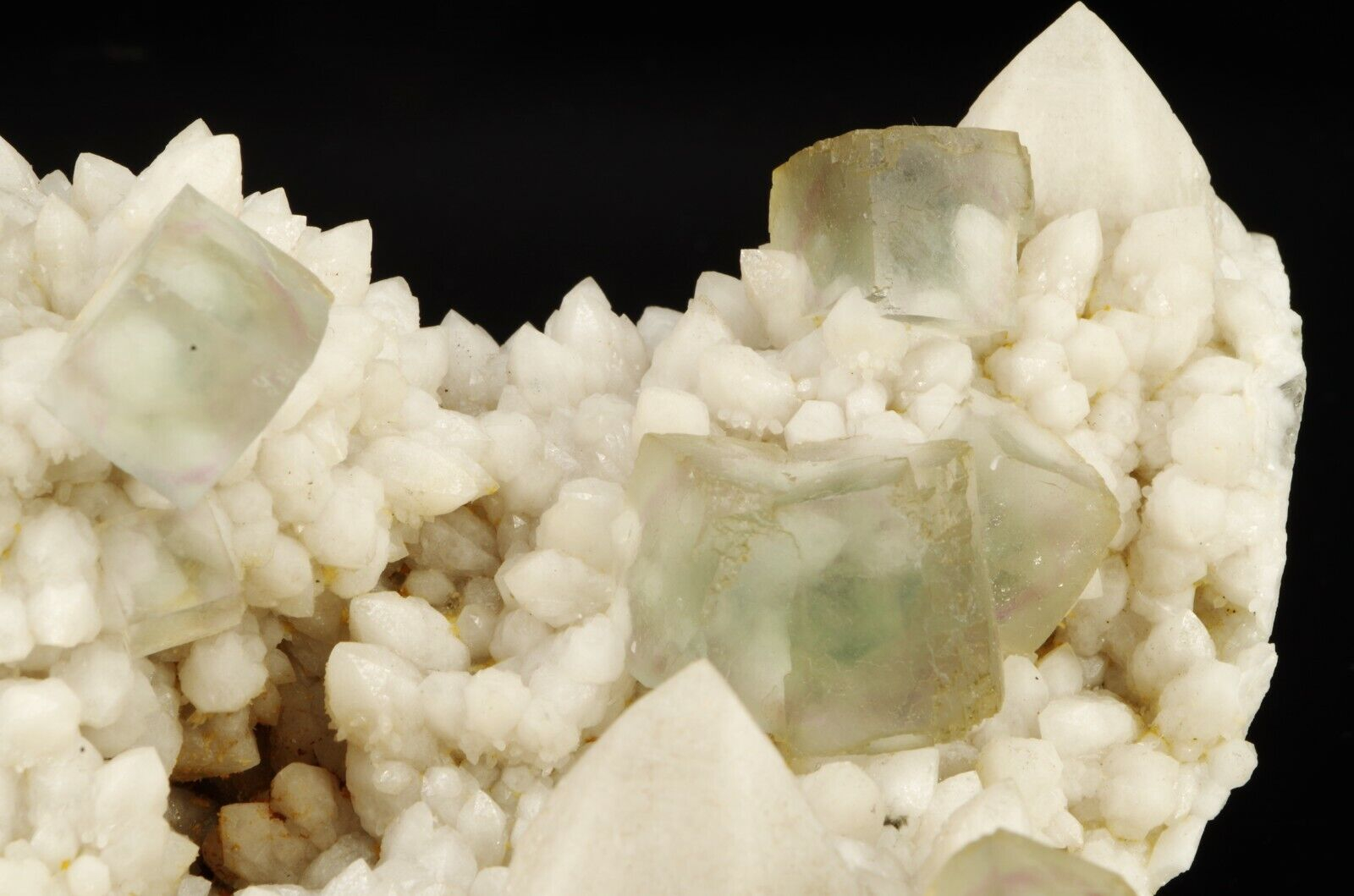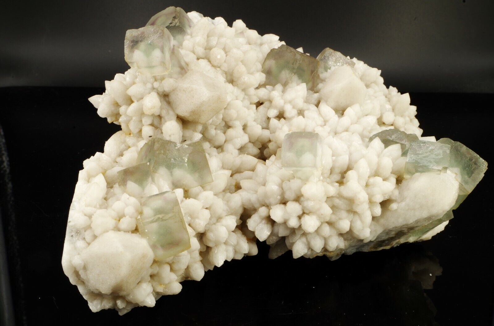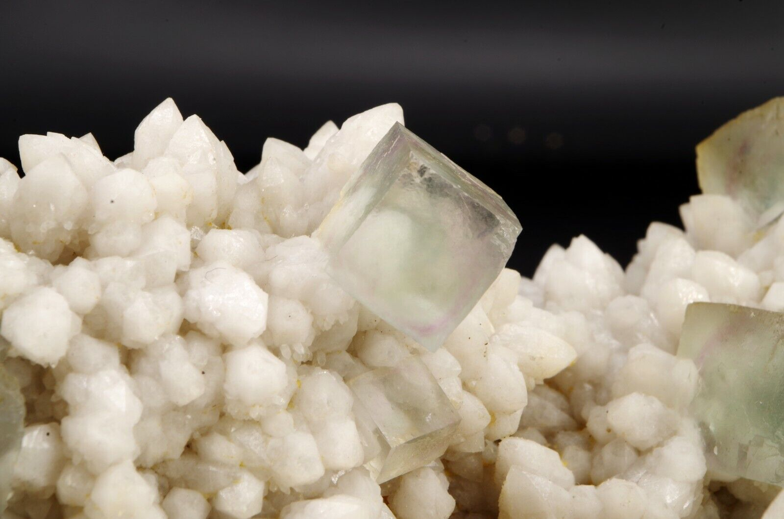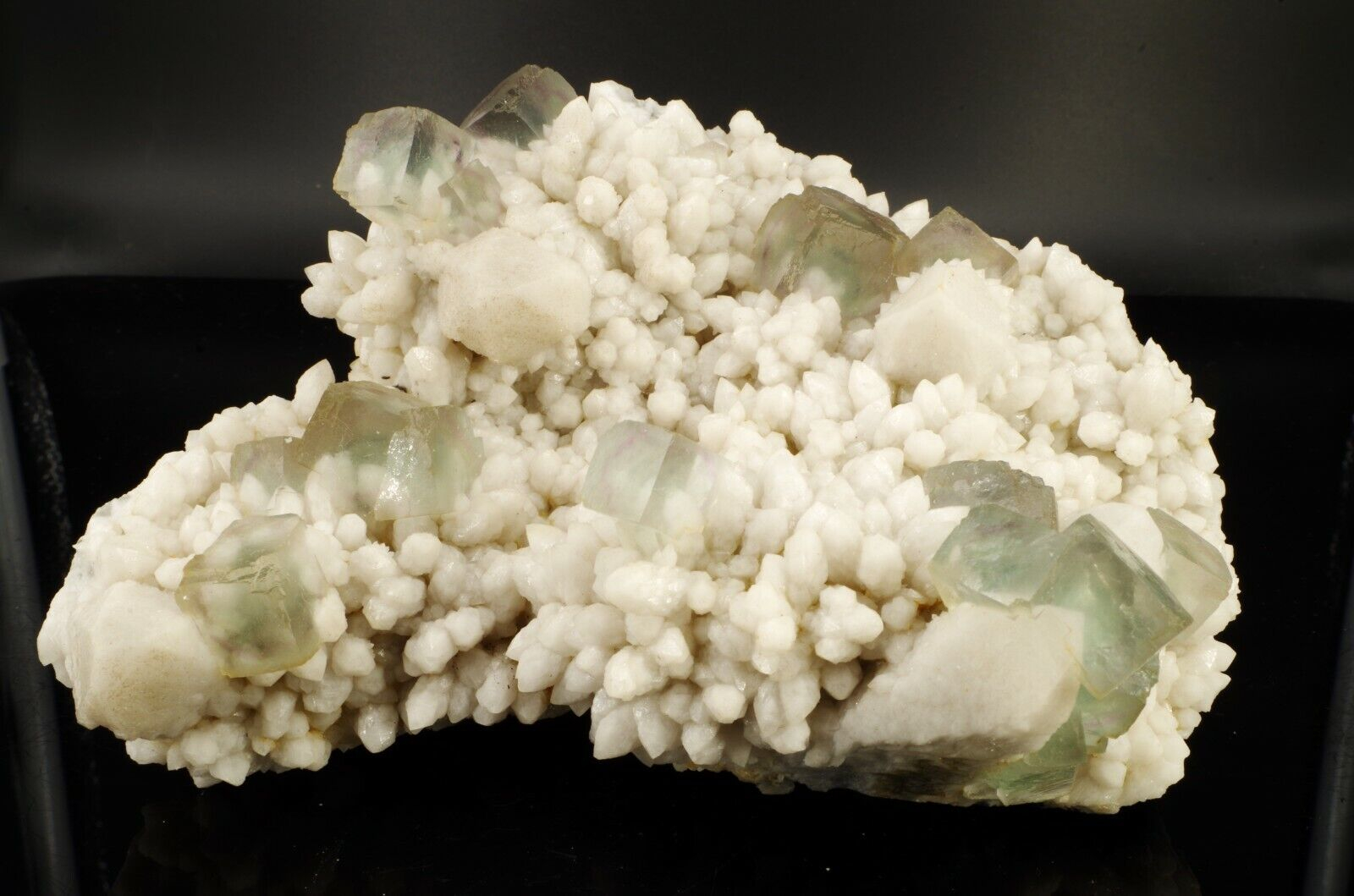 Excellente fluorite verte translucide sur quartz blanc immaculé