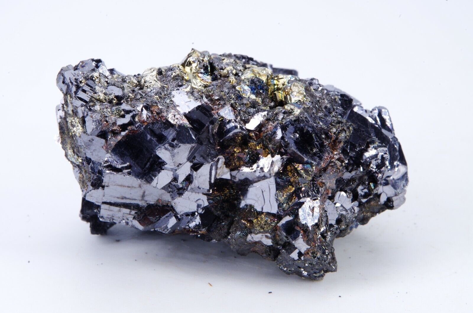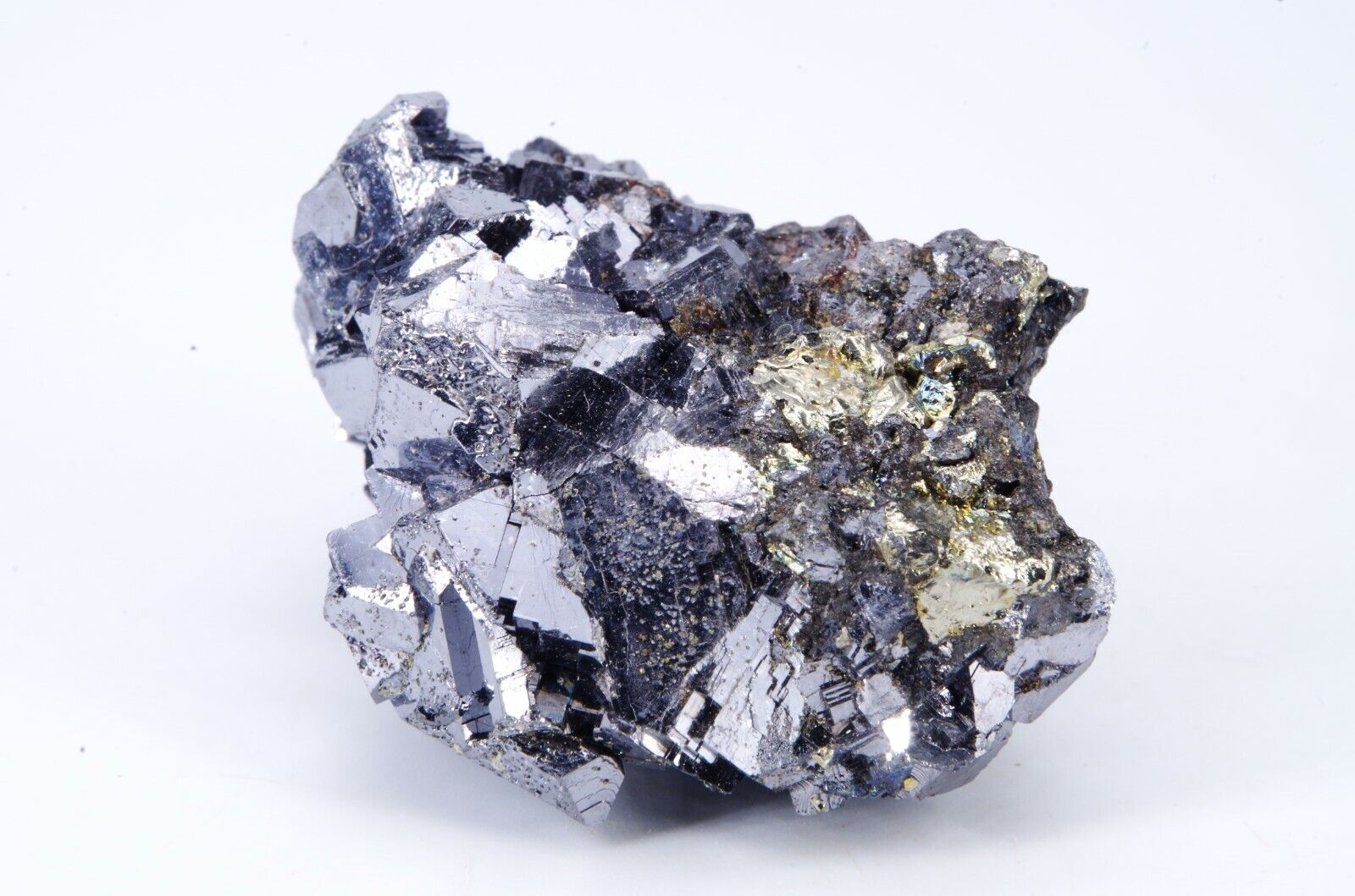 joli amas de Galène aux reflets métalliques et Chalcopyrite