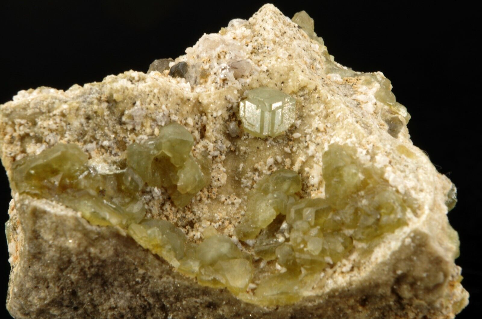 un cristal remarquablement bien formé idéalement positionné sur le spécimen avec un relief finement marqué d’aspect cubique