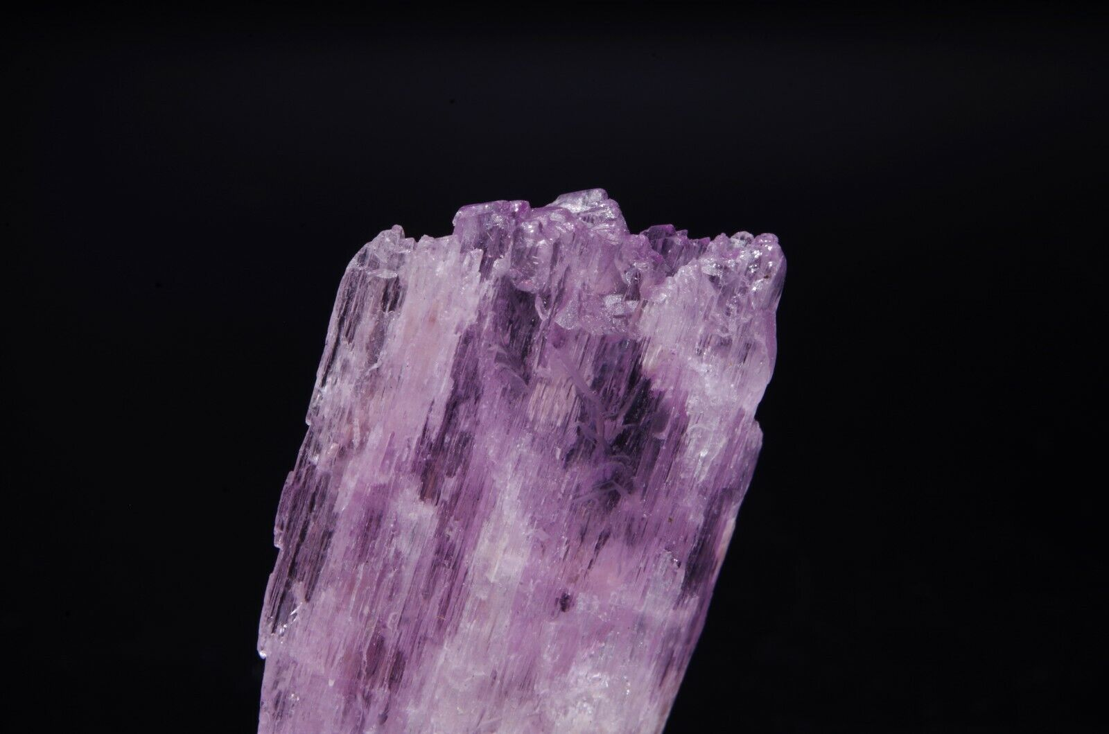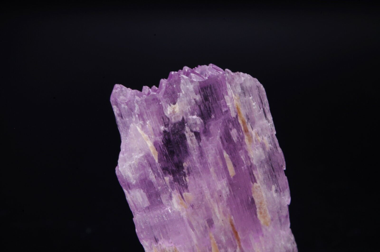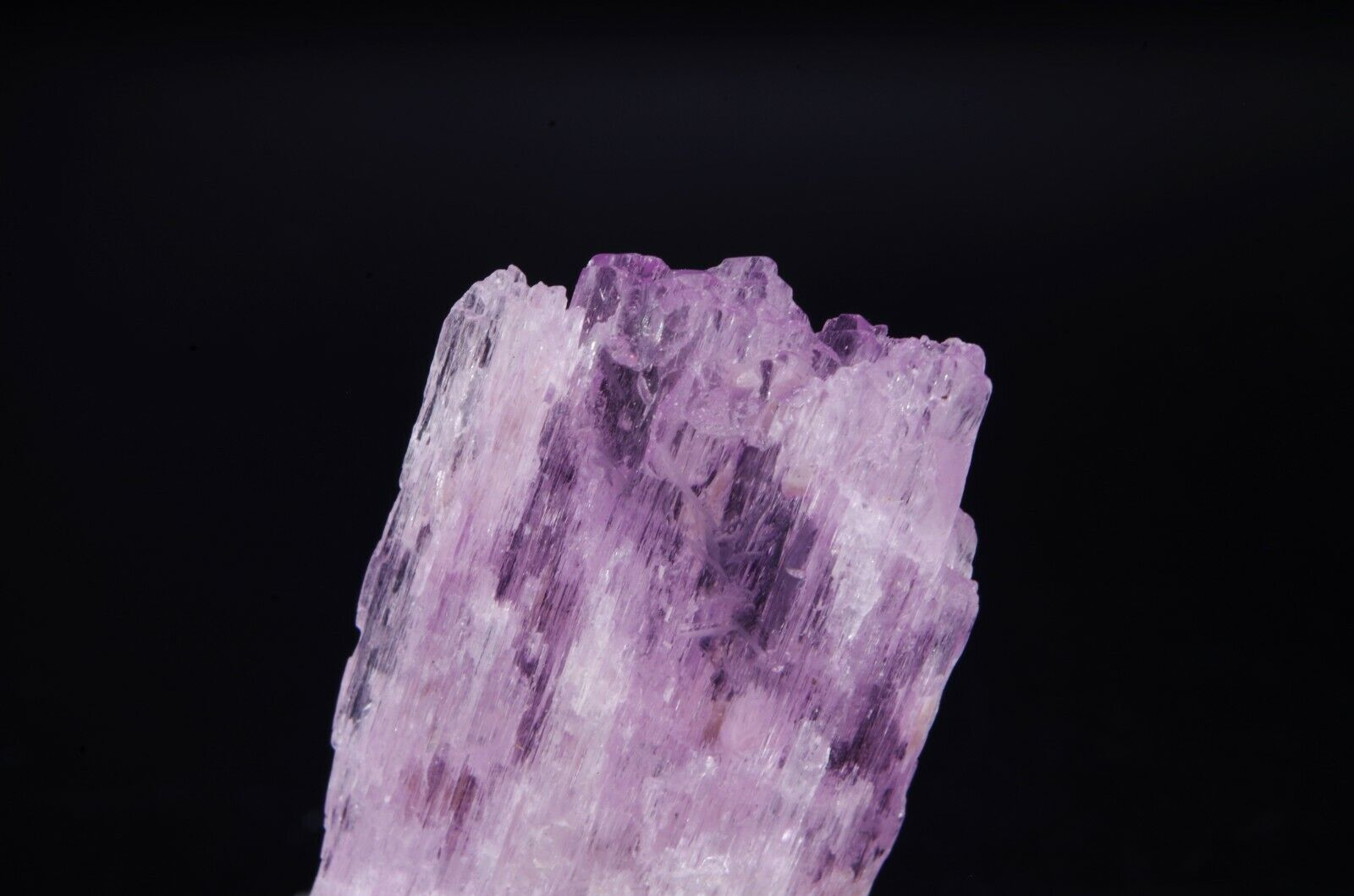 Spécimen coloré avec belle architecture fibreuse et cristallisation bi-terminée. La Kunzite fait partie de la variété des Spodumènes.
