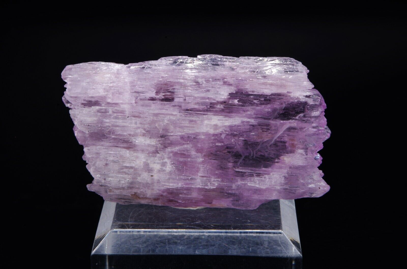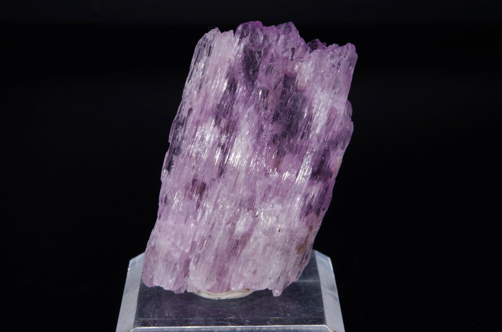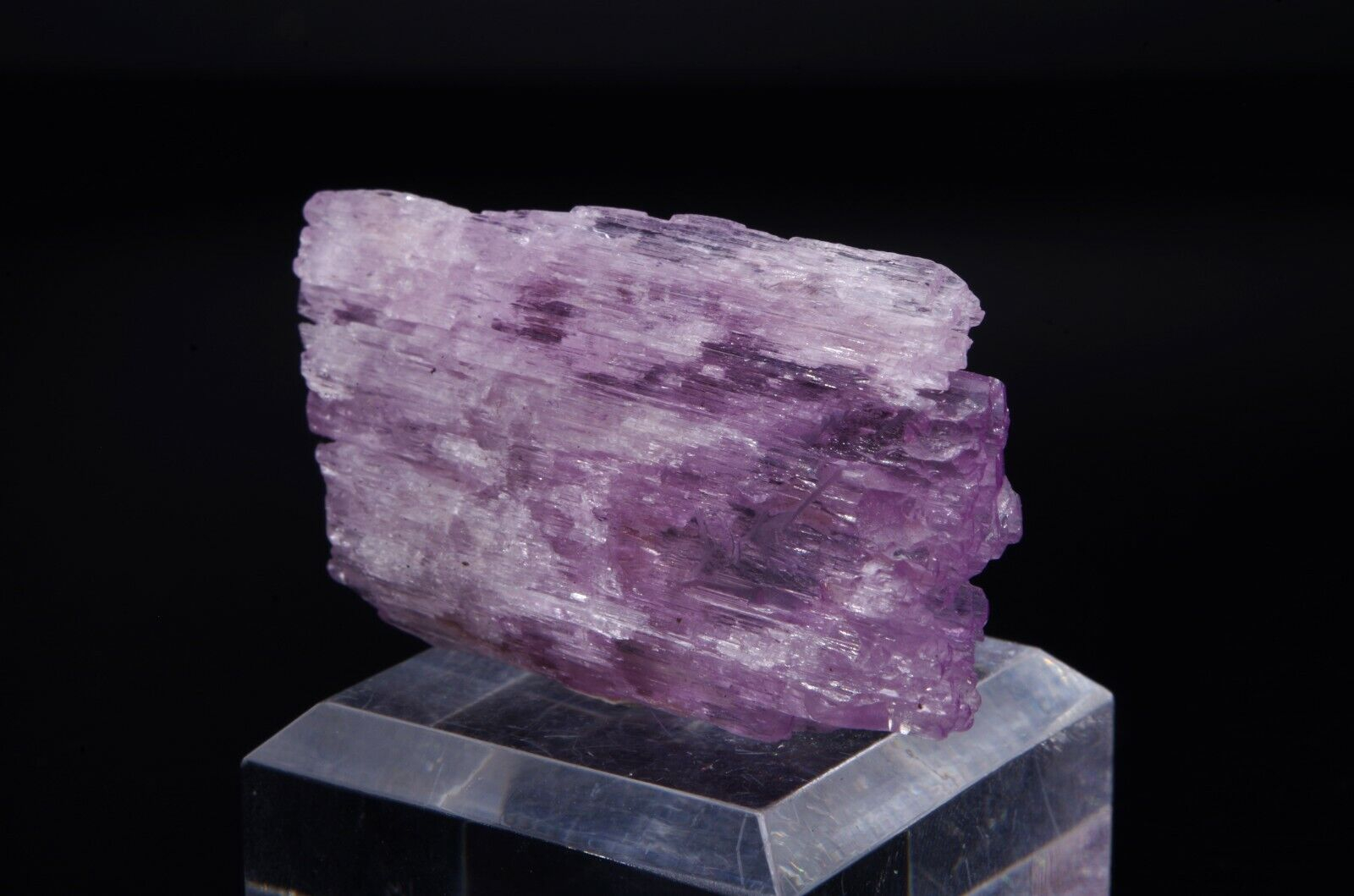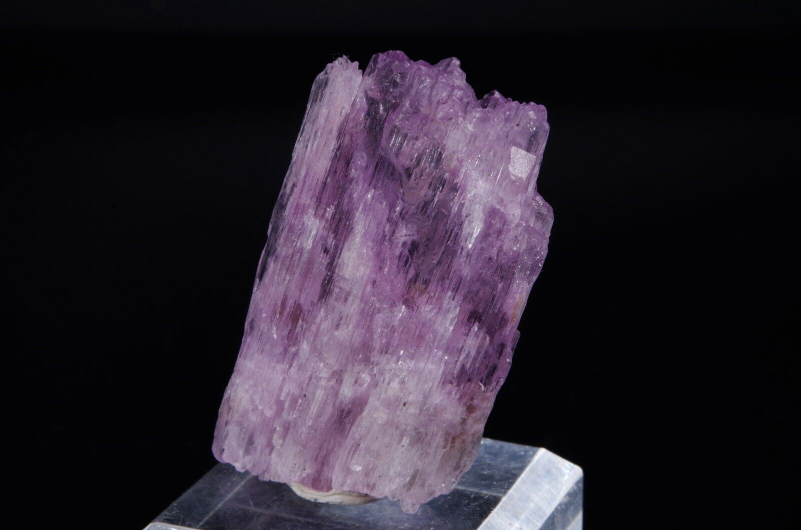 Spécimen coloré avec belle architecture fibreuse et cristallisation bi-terminée. La Kunzite fait partie de la variété des Spodumènes.