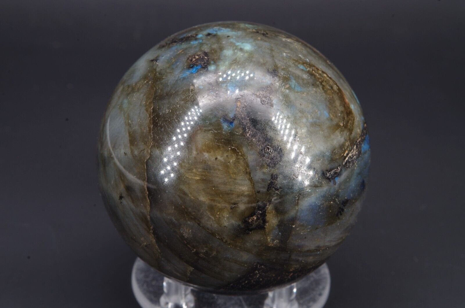 Magnifique sphère en Labradorite/ Madagascar 332g Diamètre: 6 cm Circonférence: 19.5 cm