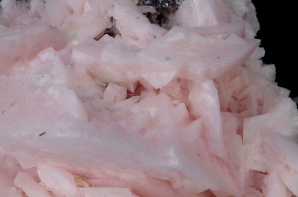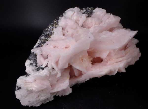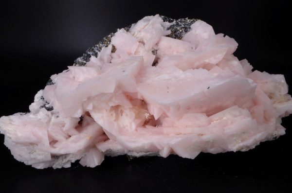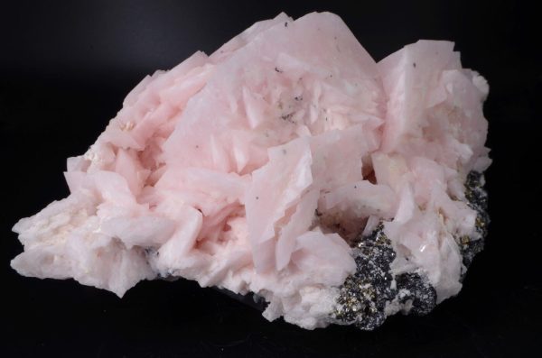 Magnifique large formation de Manganocalcite sur pyrite et sphalérite