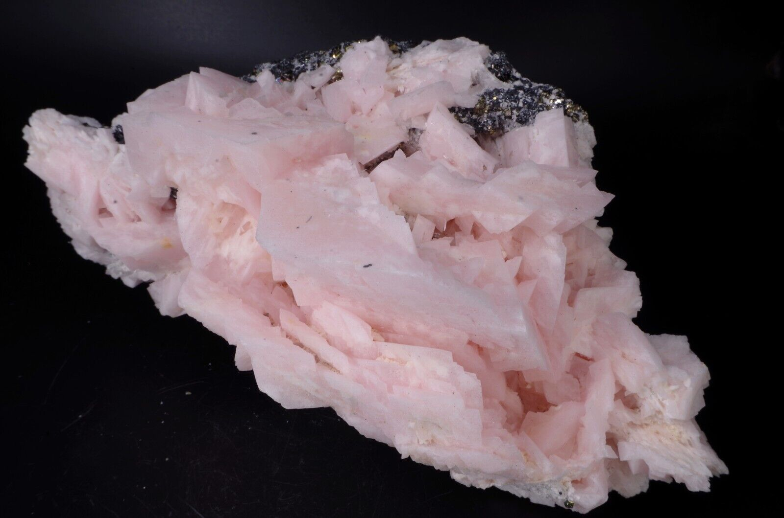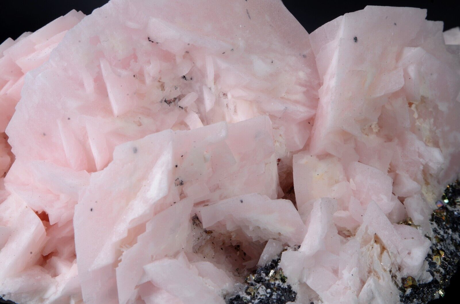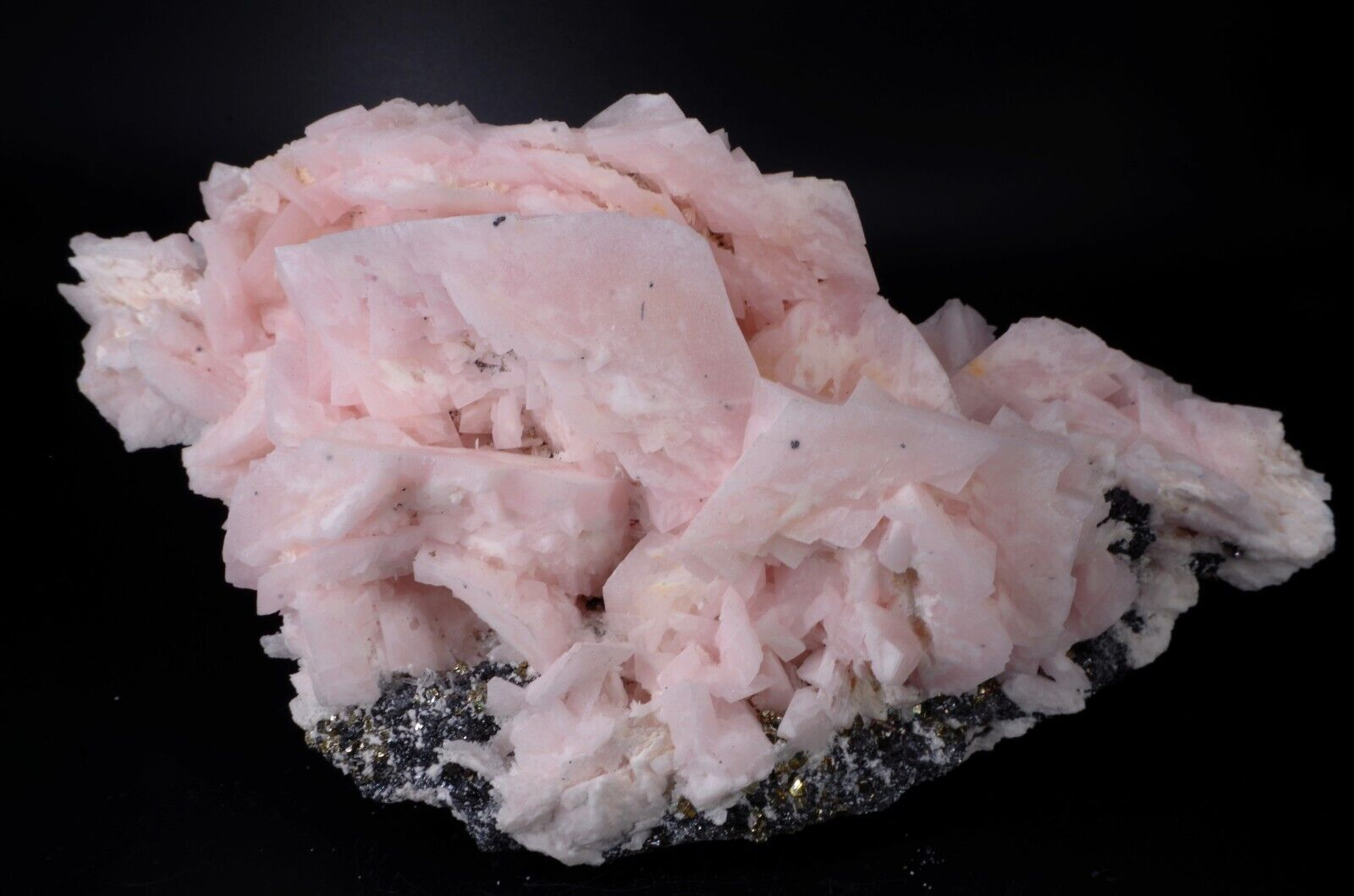 Magnifique large formation de Manganocalcite sur pyrite et sphalérite