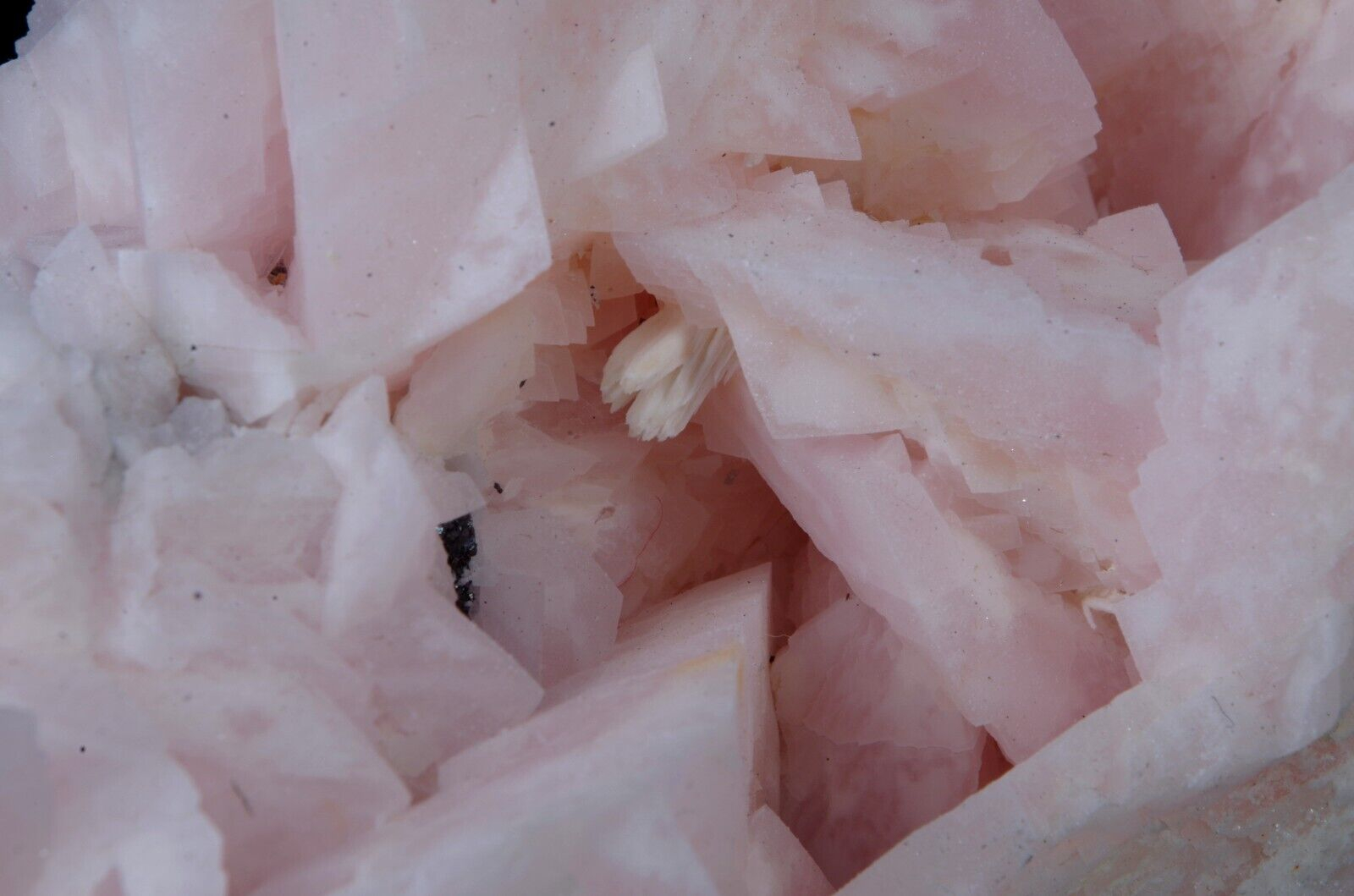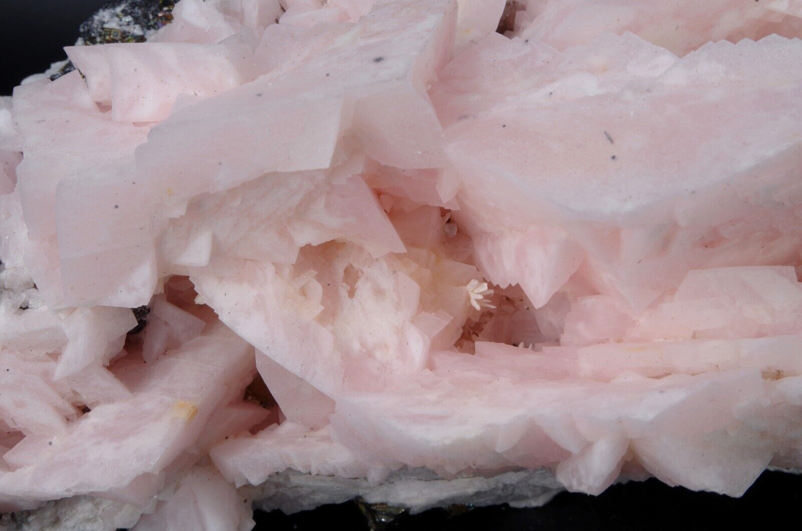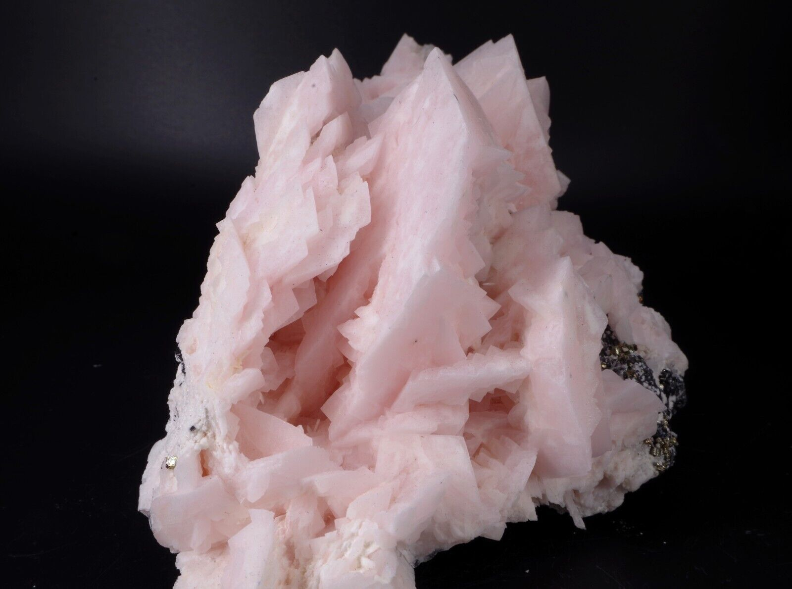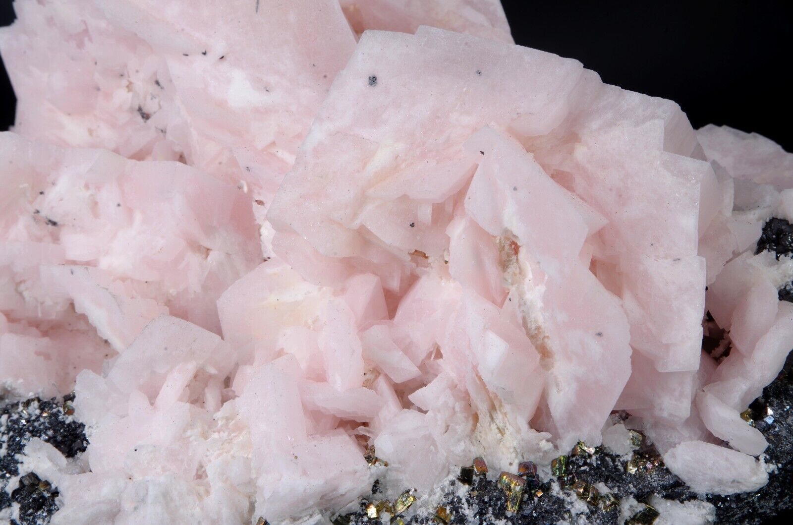 Magnifique large formation de Manganocalcite sur pyrite et sphalérite