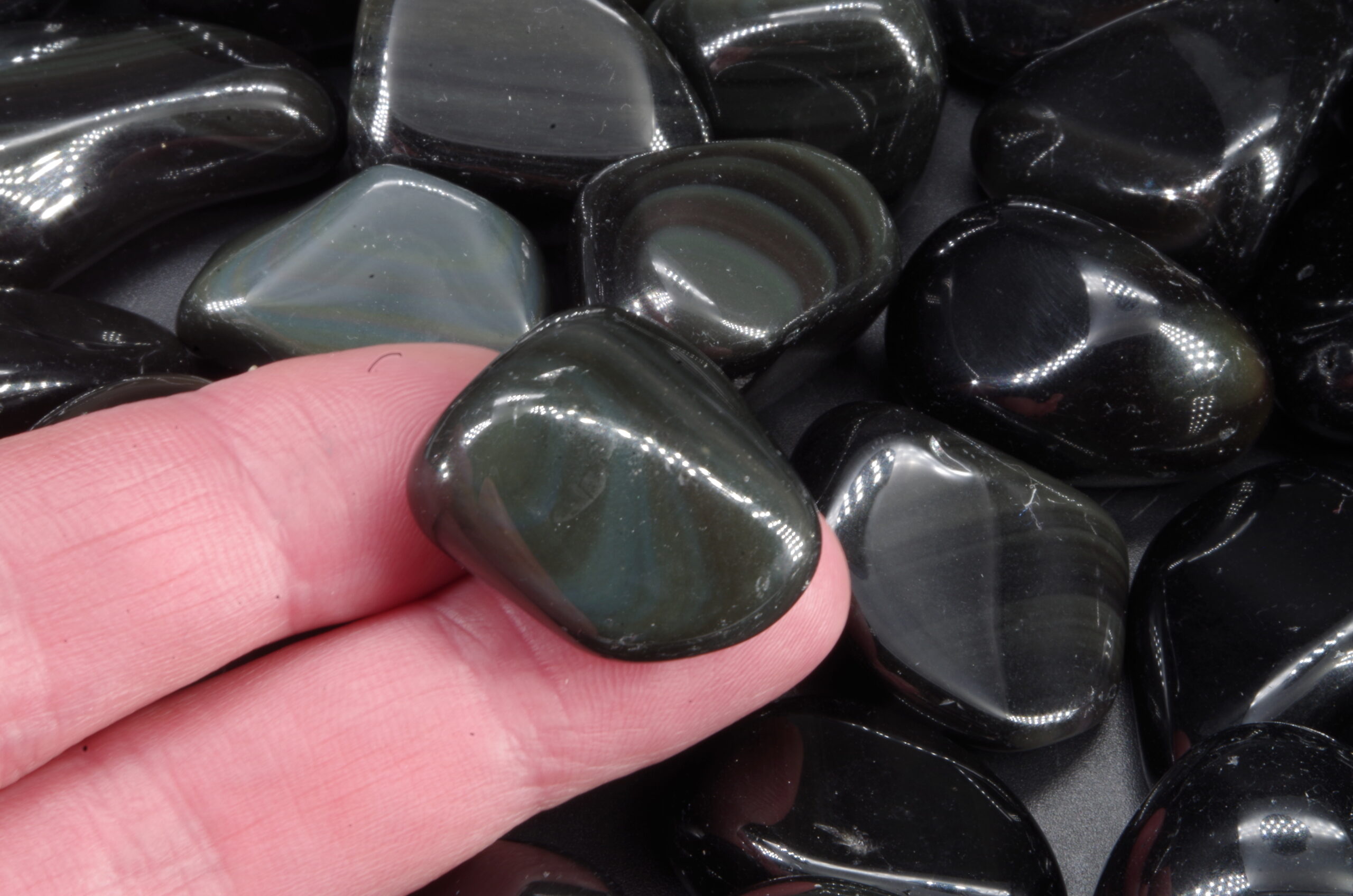 Pierres roulées d’Obsidienne œil céleste du Mexique d’excellente qualité