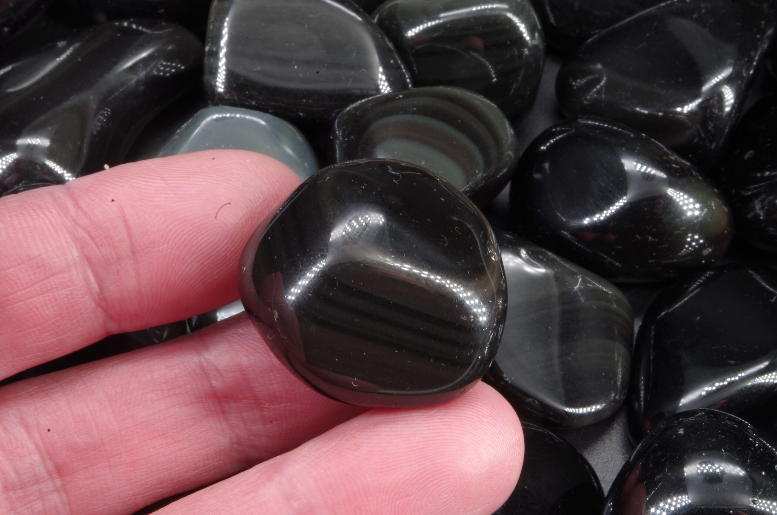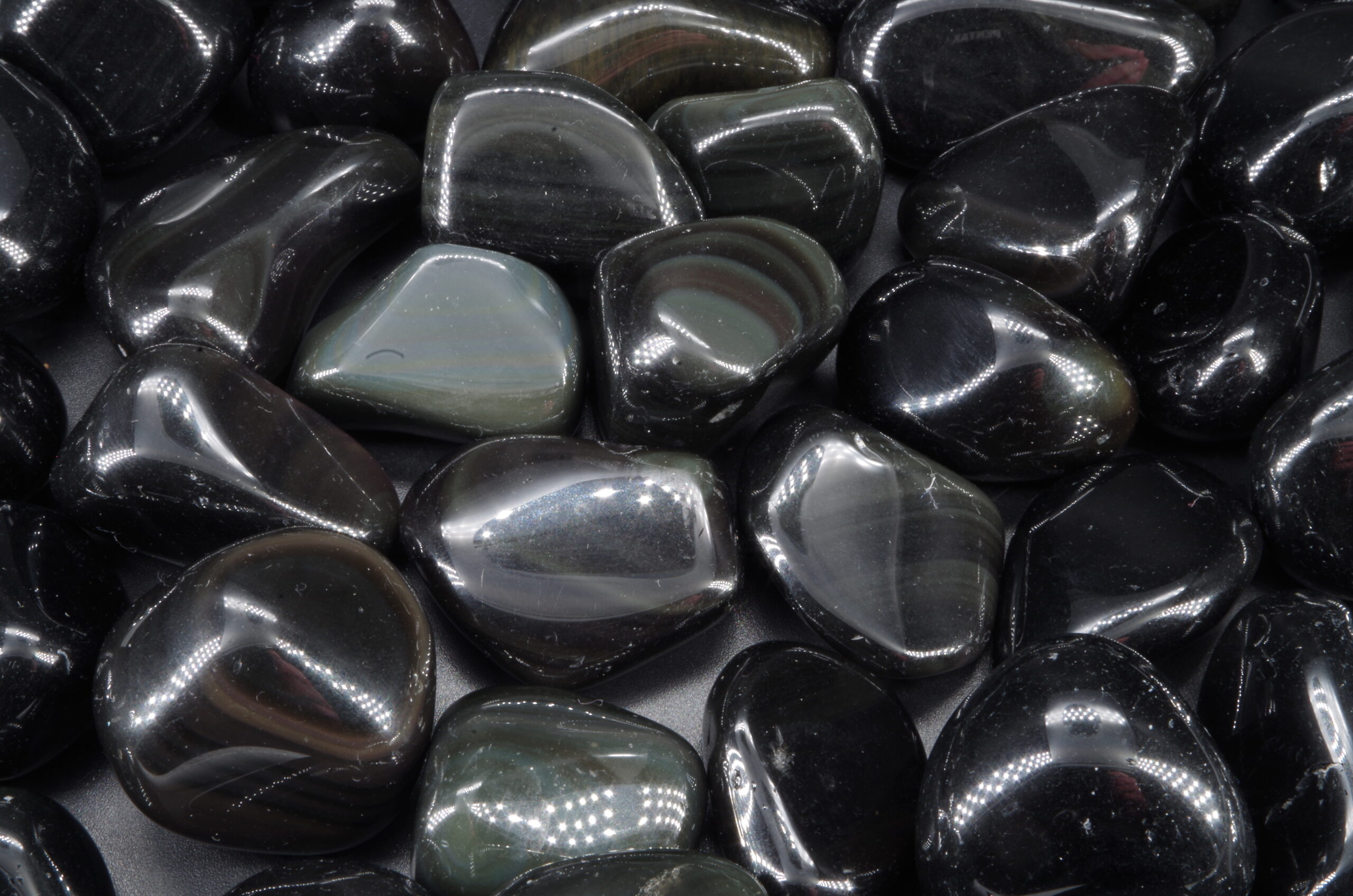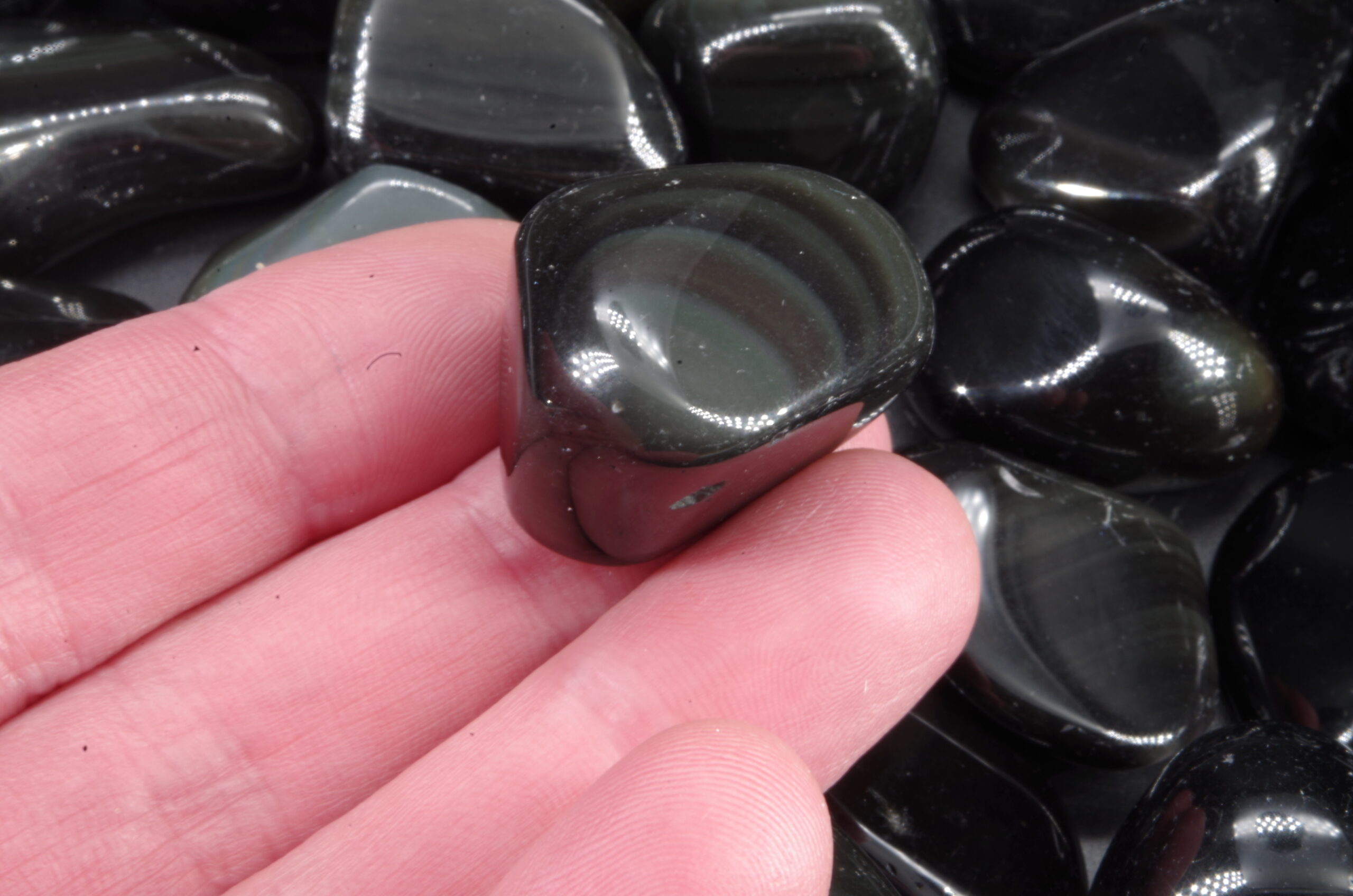 Pierres roulées d’Obsidienne œil céleste du Mexique d’excellente qualité