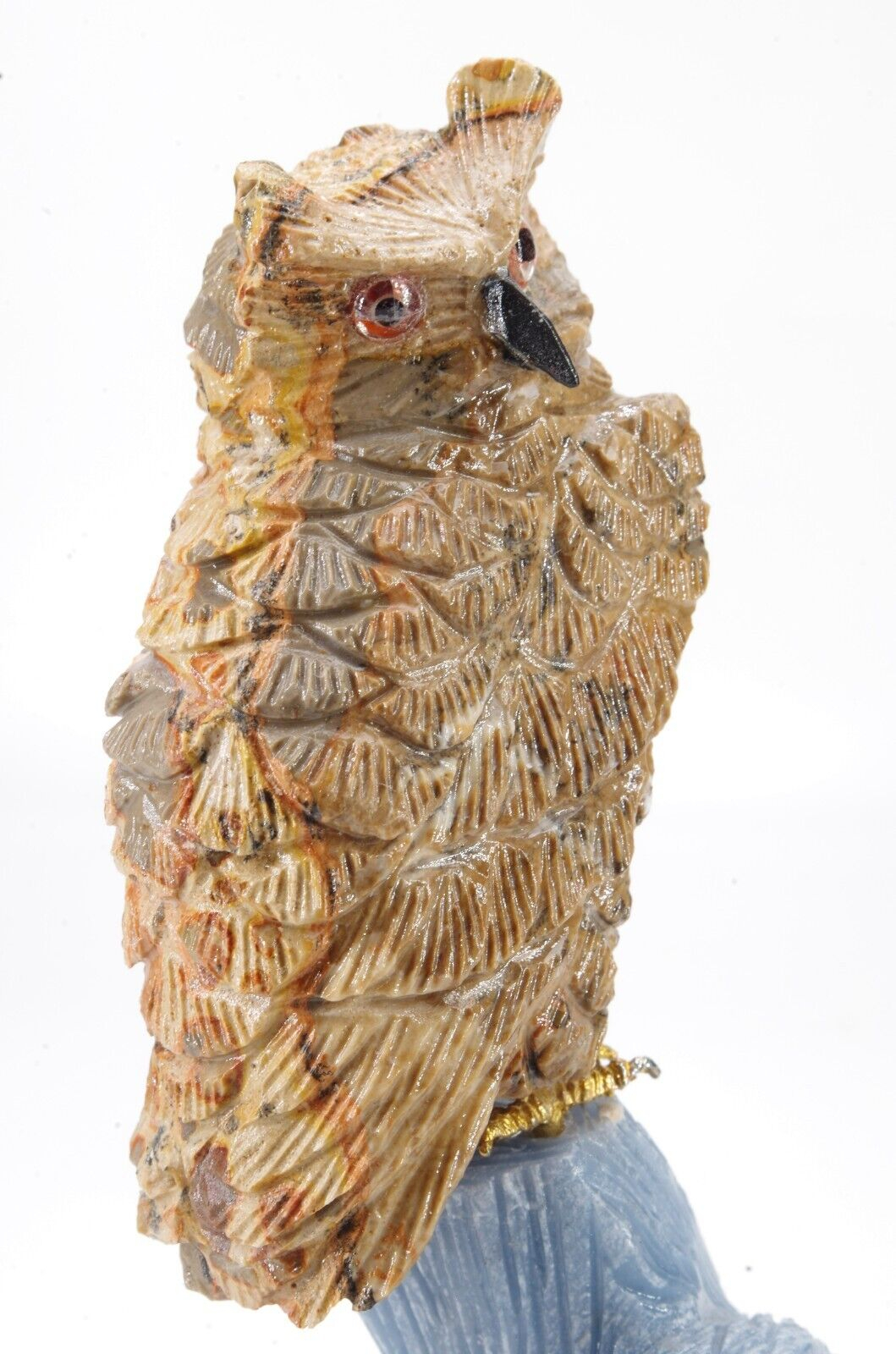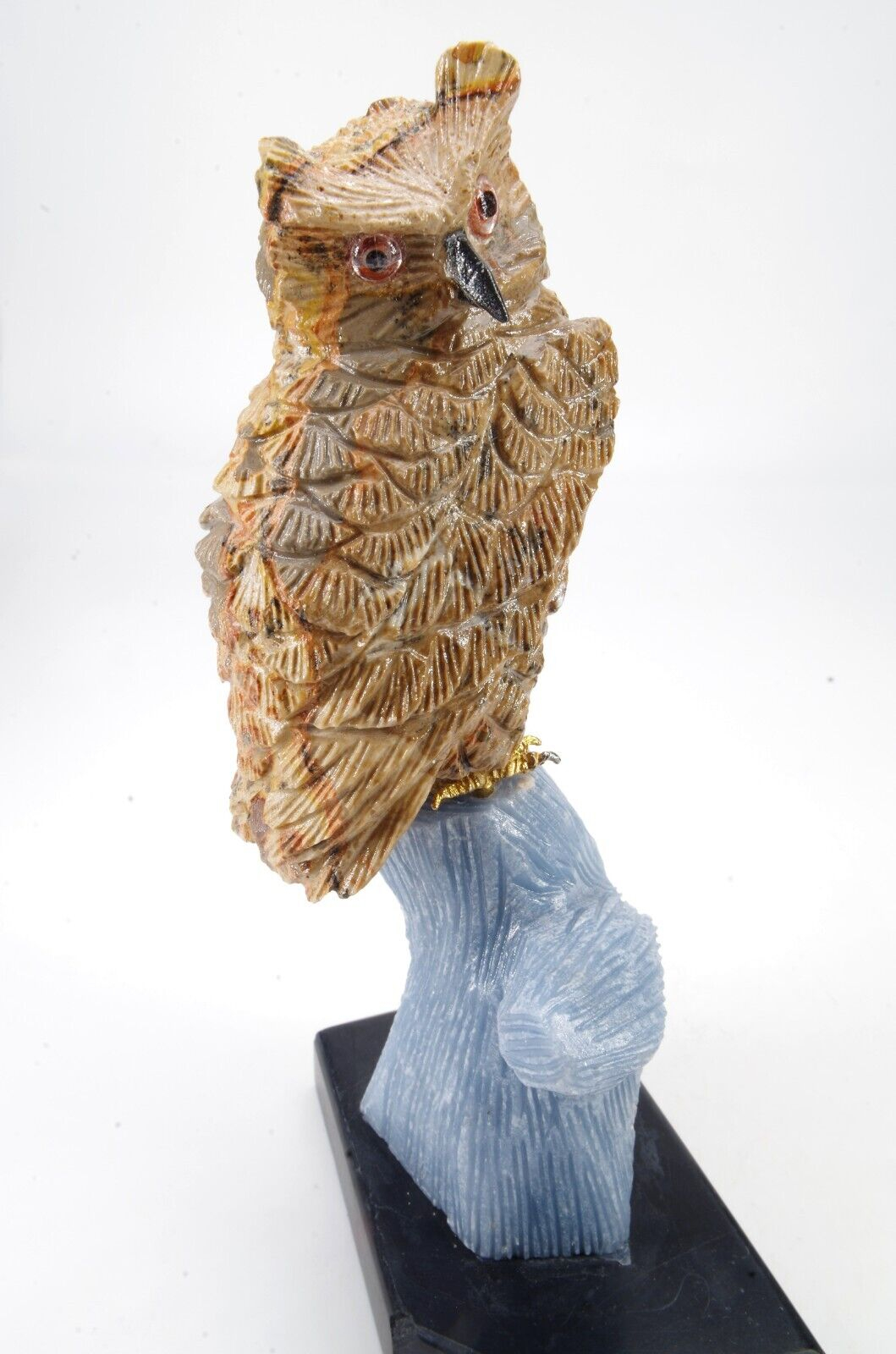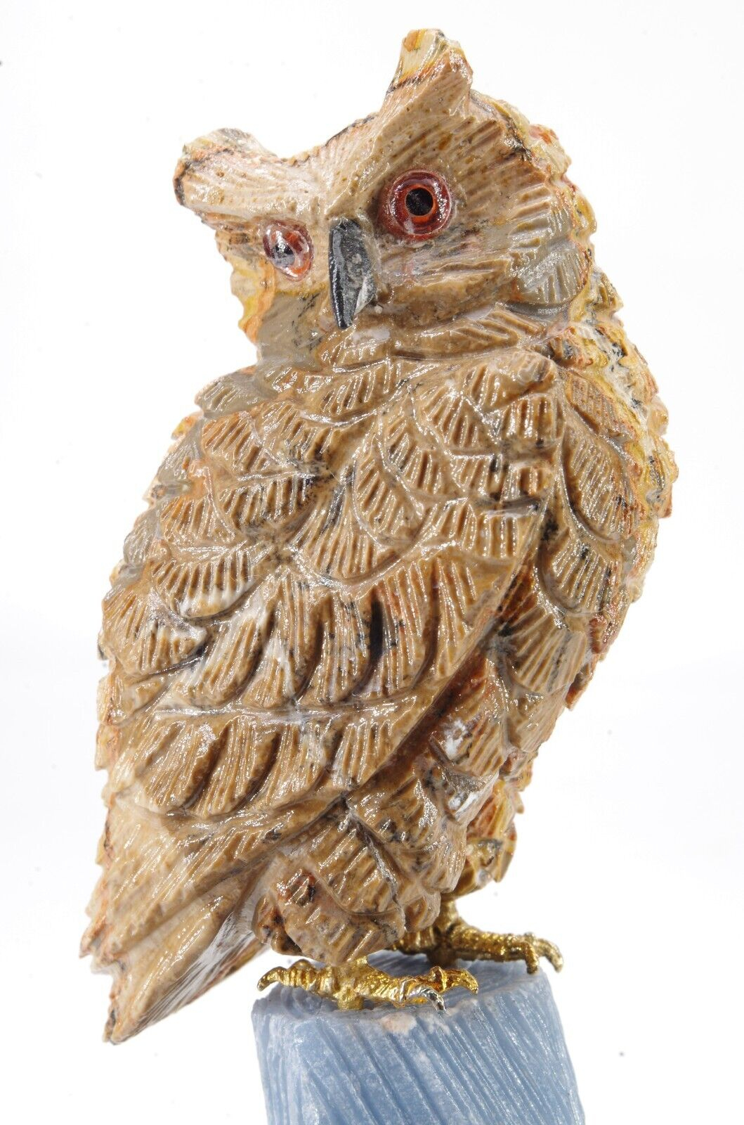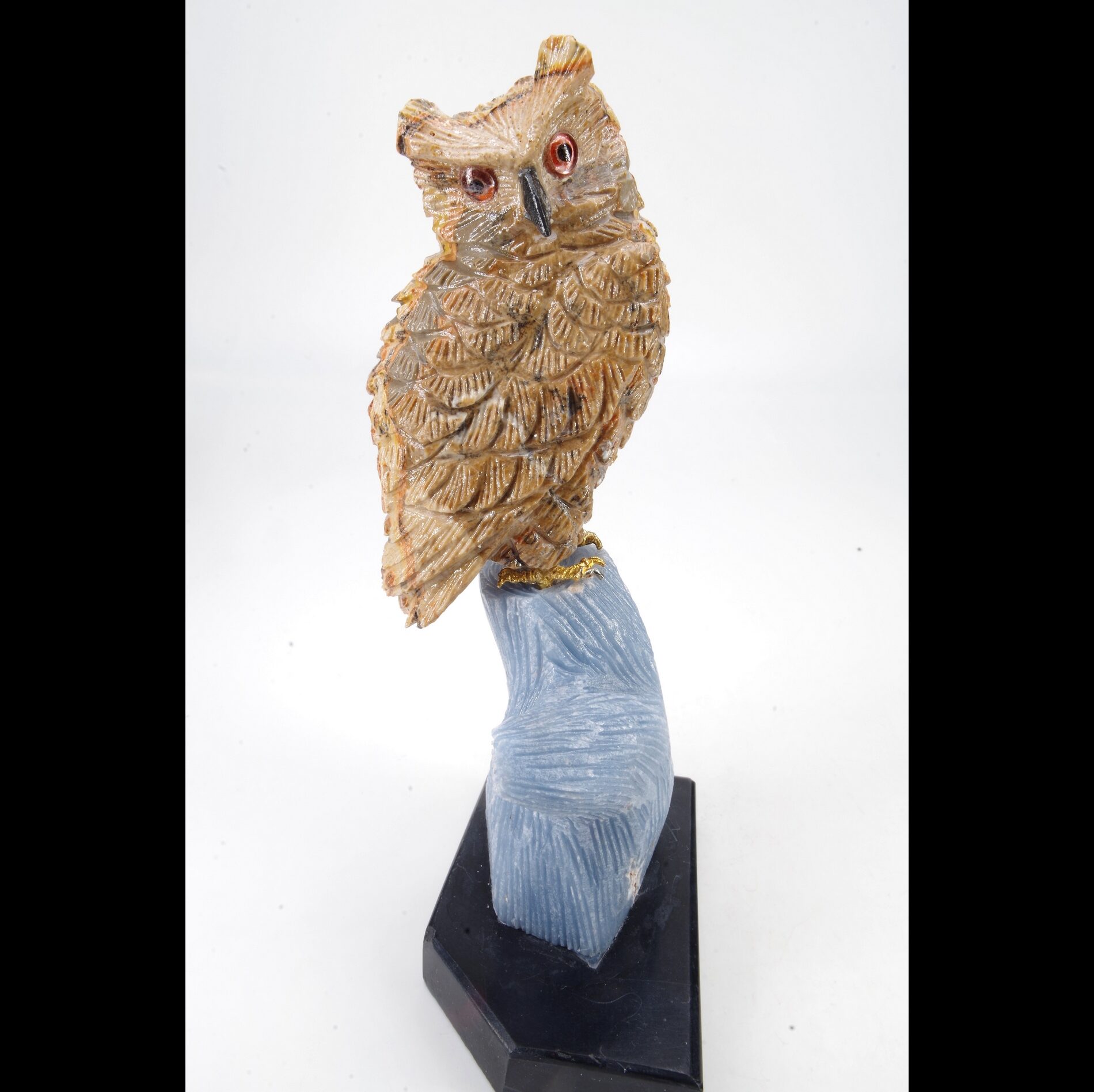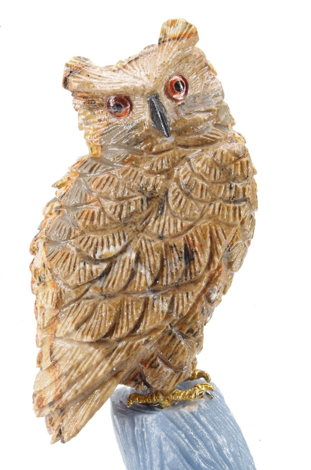 sculpture en forme d’oiseau composé principalement de leopardite et d’angelite Entièrement fait main Pérou