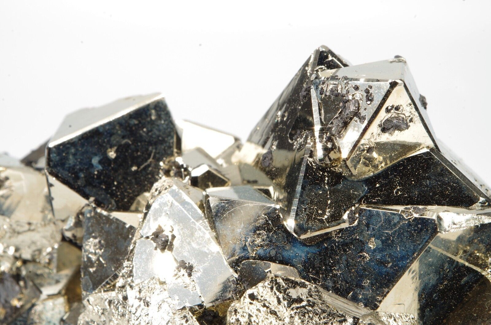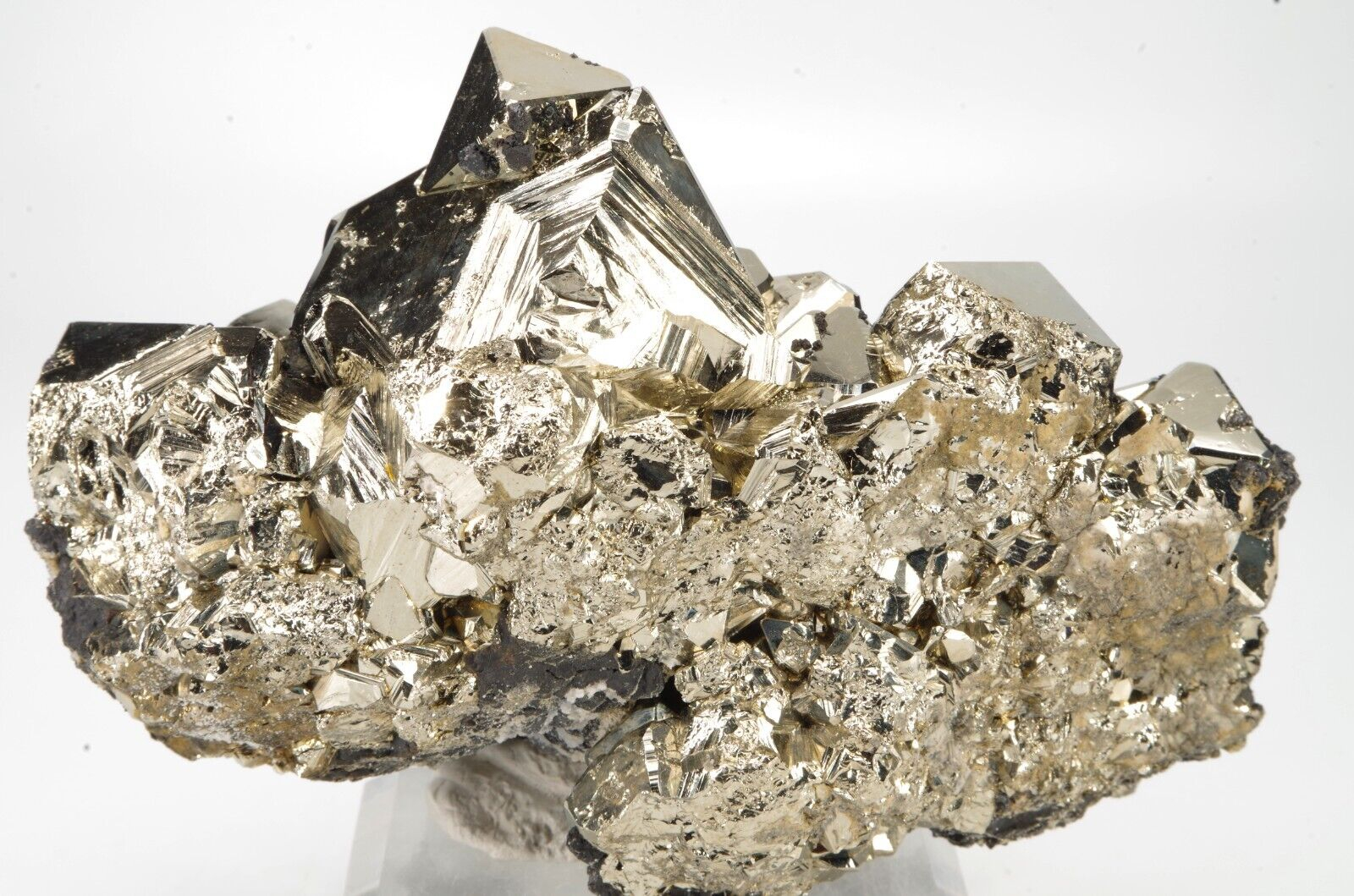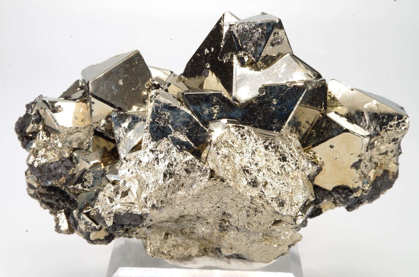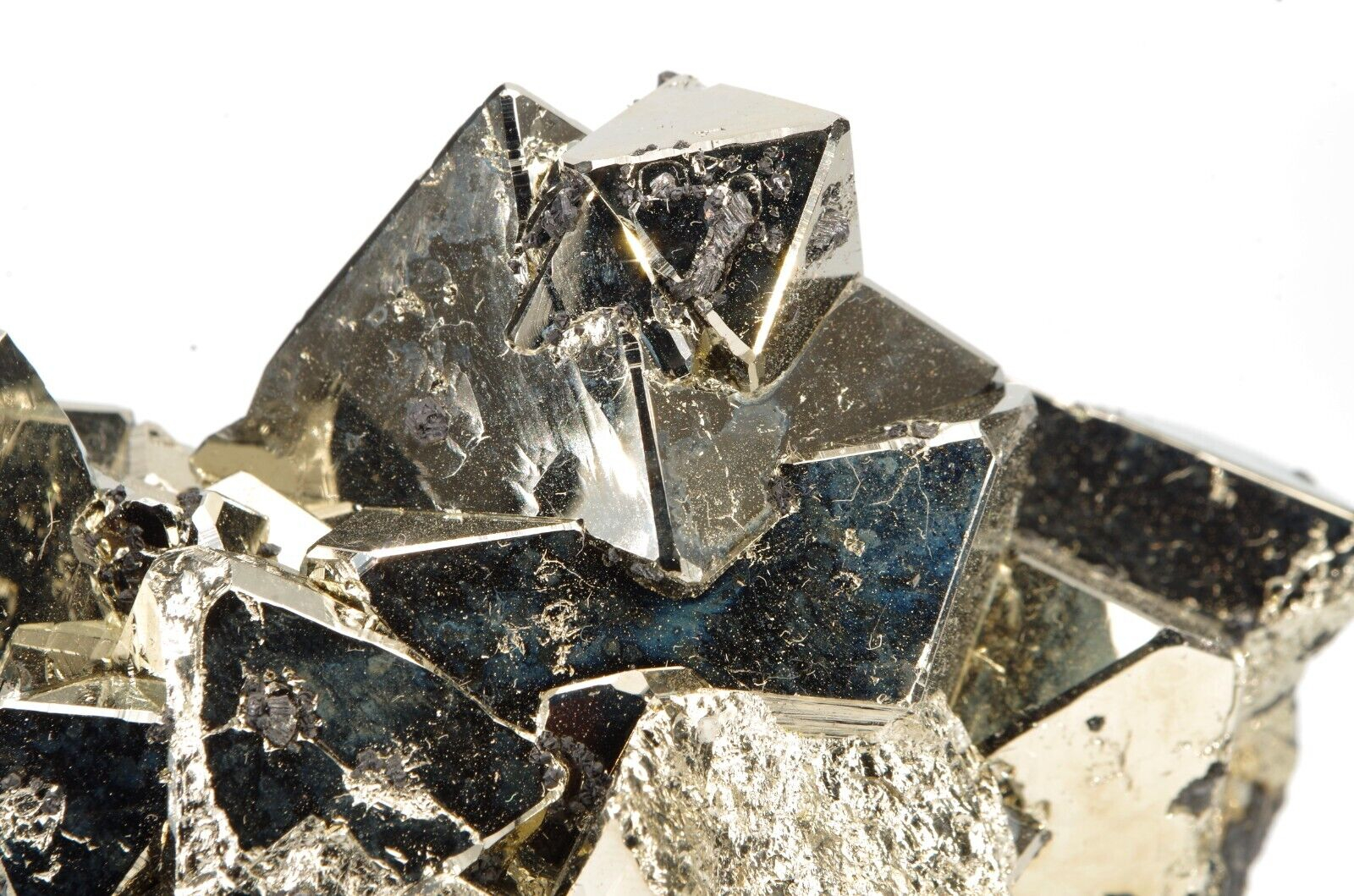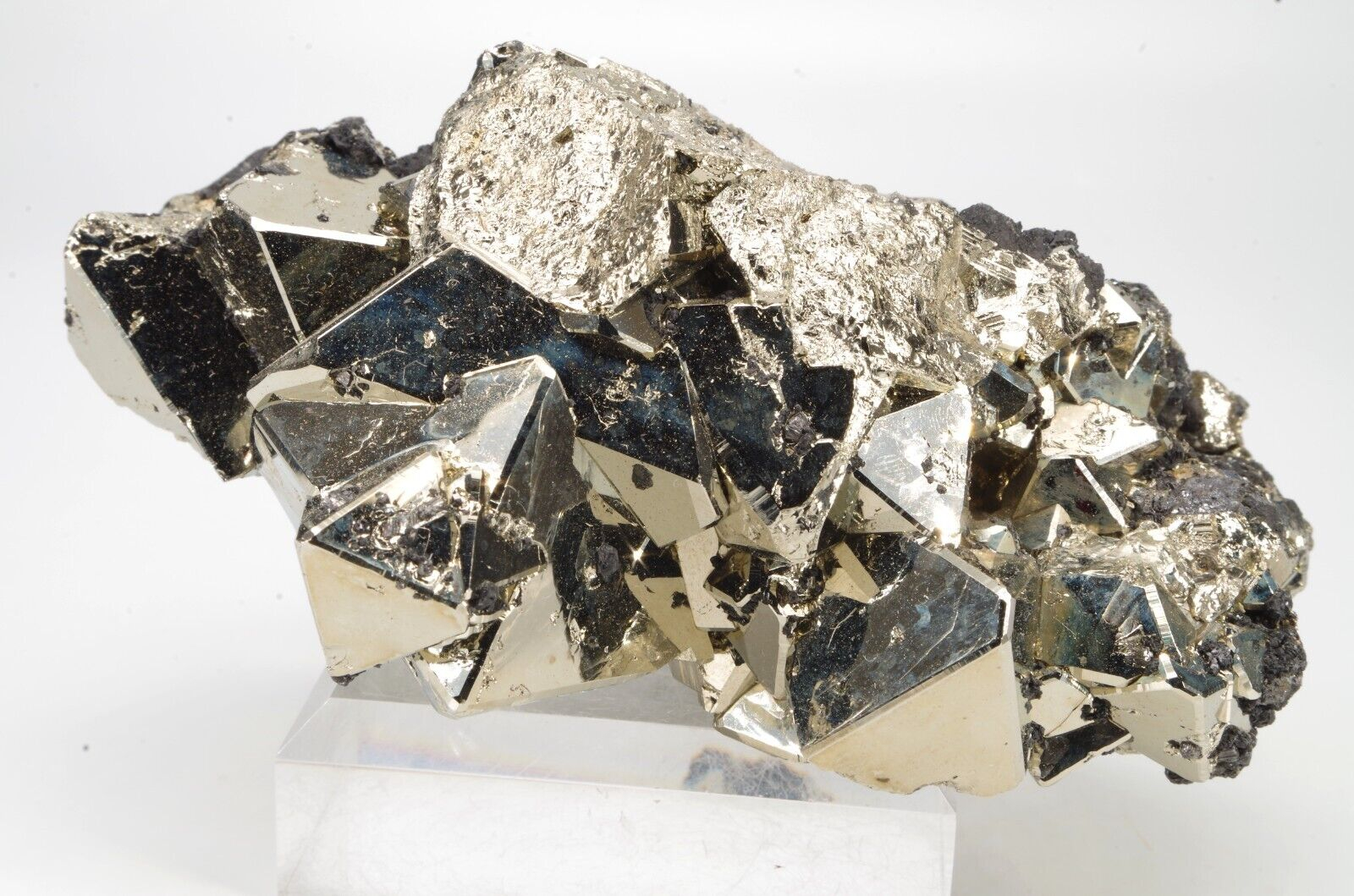 Belle pyrite octaédrique aux arrêtes chanfreinées associée à quelques formations de Sphalérite.