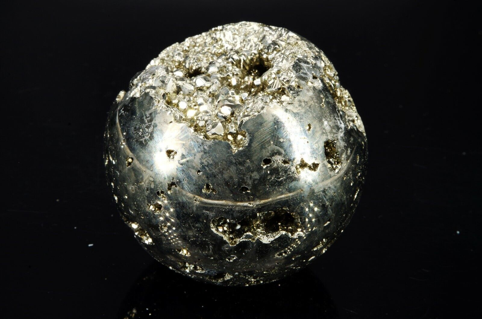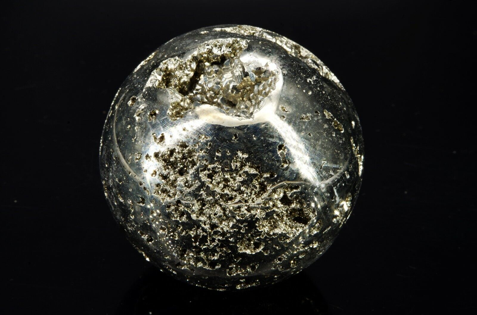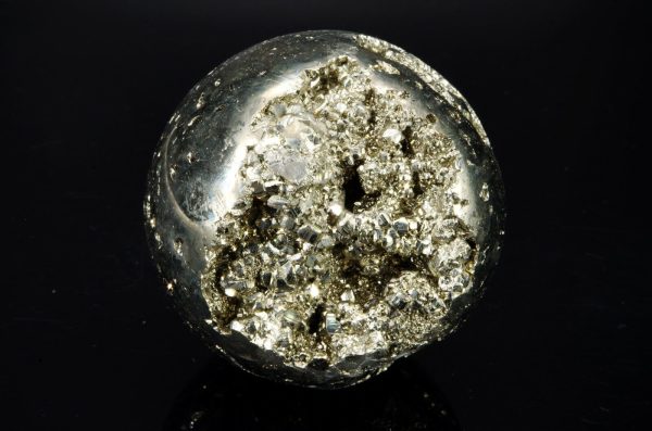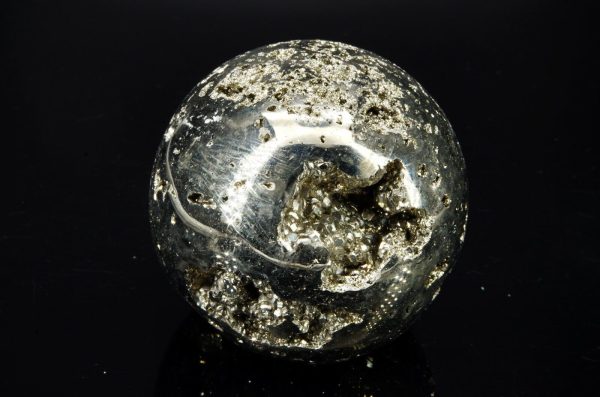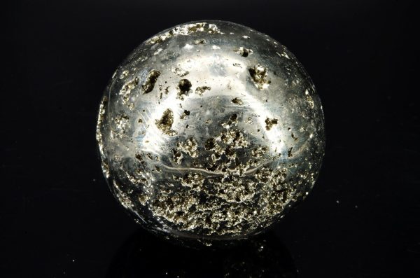 Pyrite en forme de sphère, provenance: Pérou, mine de Huanzala Poids: 478gr Diamètre: 6 cm Circonférence: 19.5 cm
